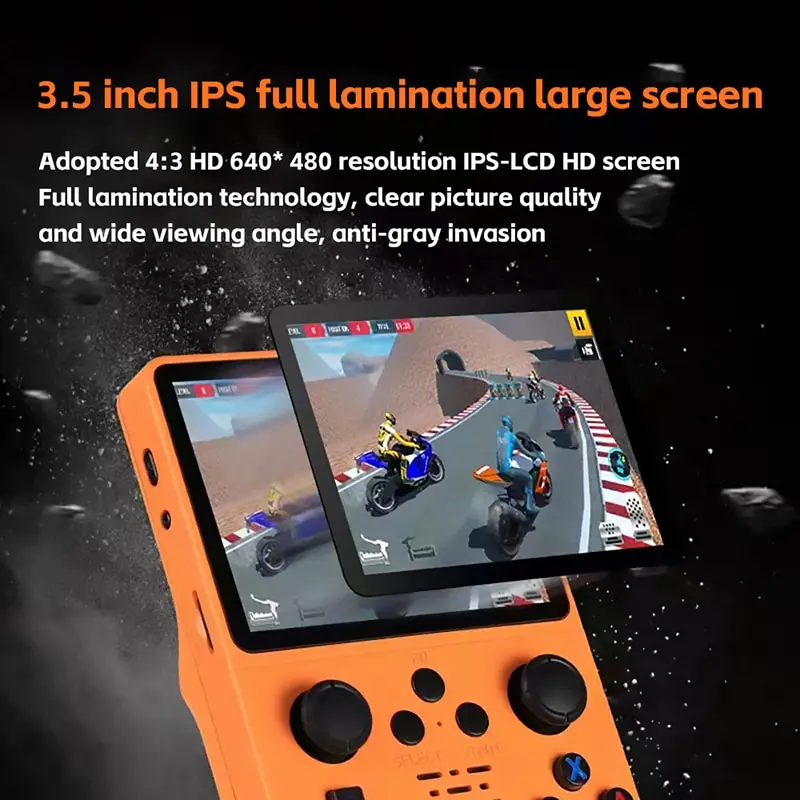 Comprar Consola de juegos portátil R35S, sistema Linux, pantalla IPS de 3,5 pulgadas, Retro, HD, Mini reproductor de vídeo portátil de bolsillo, 3500mAh