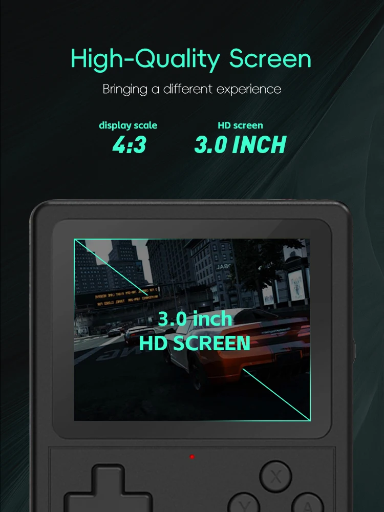 Esta consola de juegos portátil tiene más de 6000 juegos clásicos seleccionados, pantalla HD 3,0, pantalla suave de alta definición con joystick de alta precisión, Soporte para descargar y coleccionar juegos, soporte para 7 tipos de emuladores, que cubren una amplia gama de juegos.