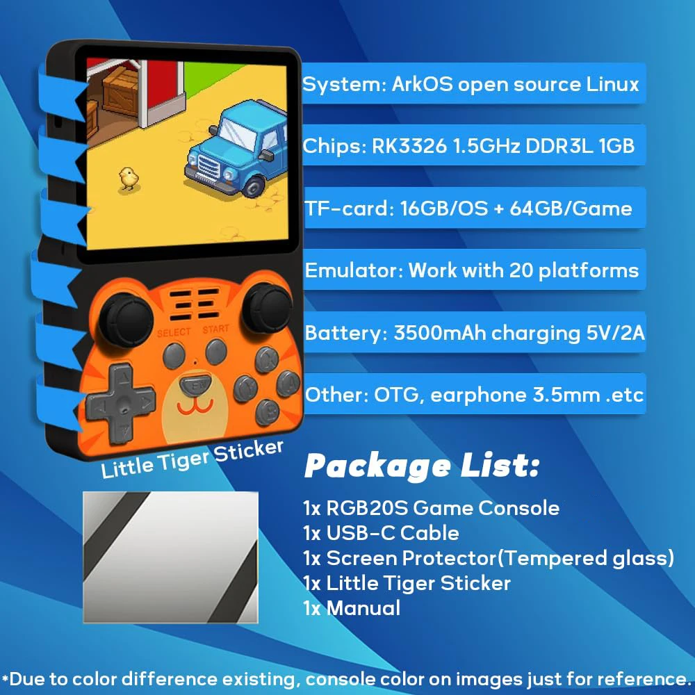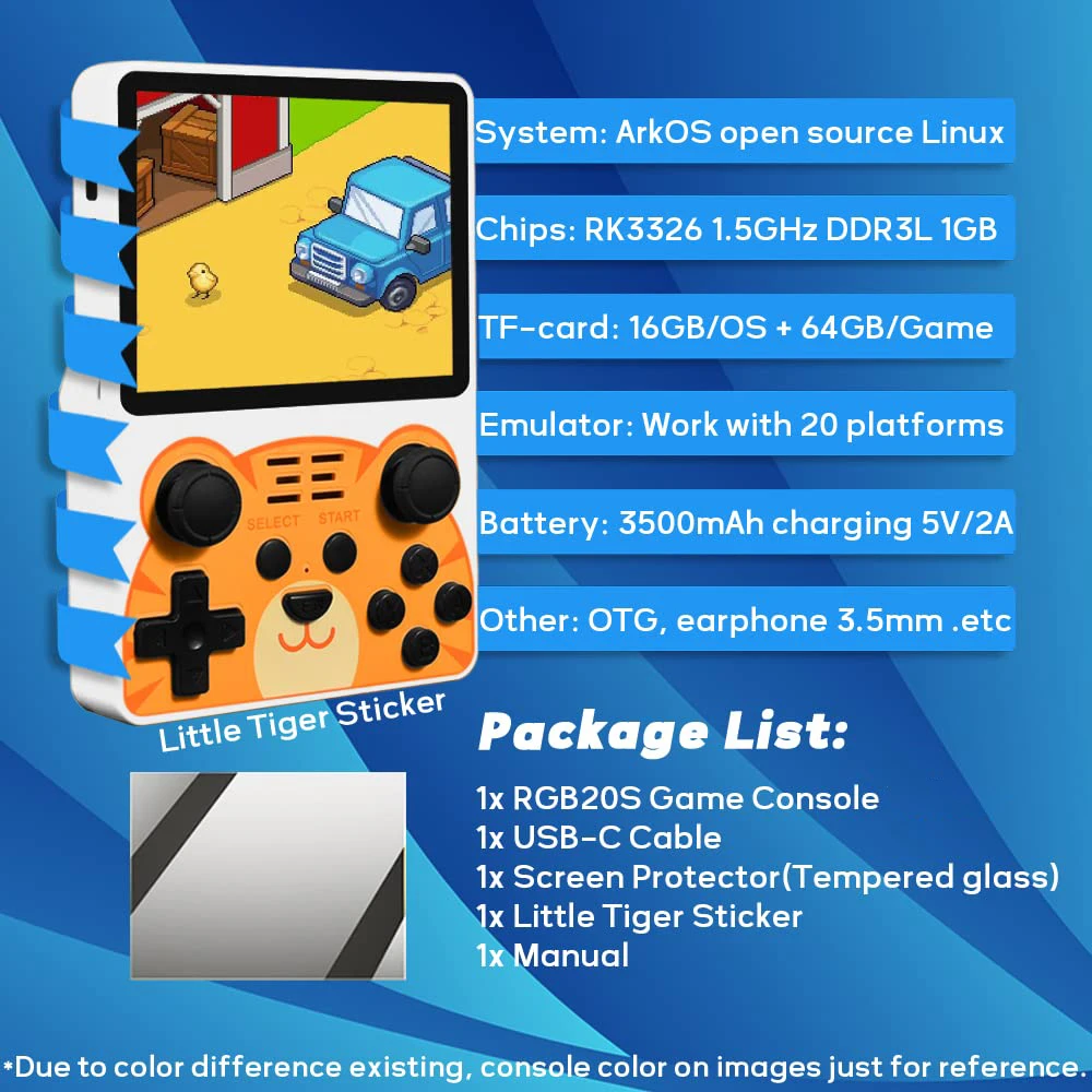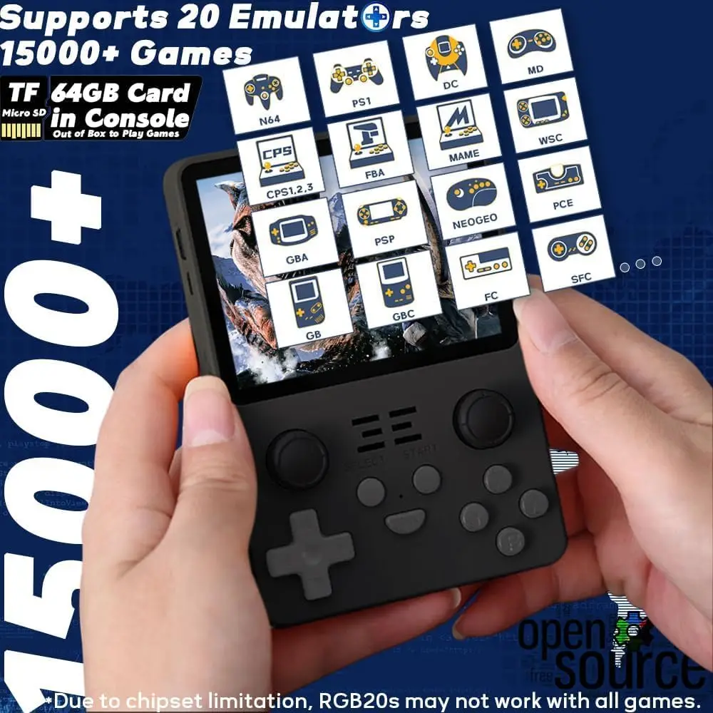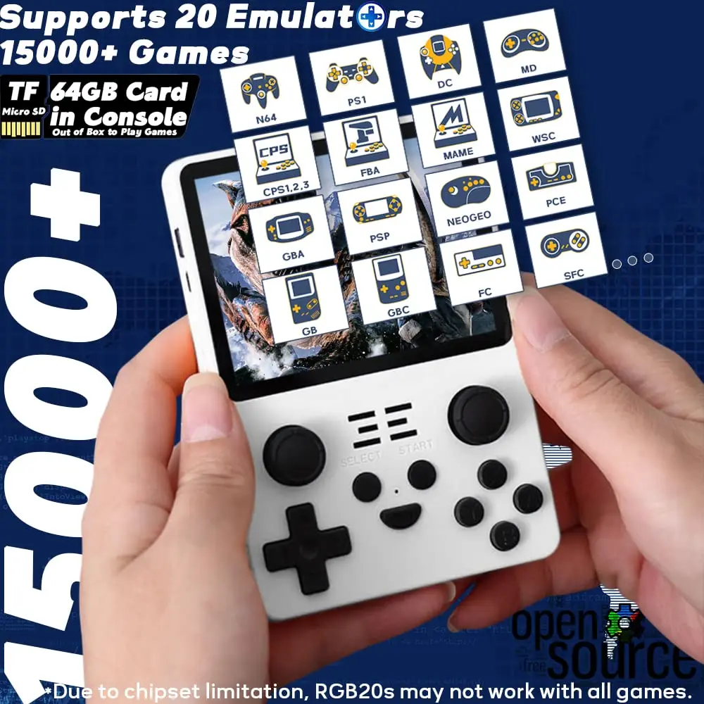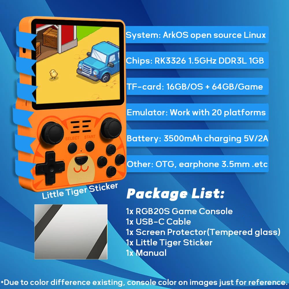 Comprar Consola de juegos portátil RGB20S para niños, miniconsola Retro con 20 emuladores clásicos, 35000 juegos