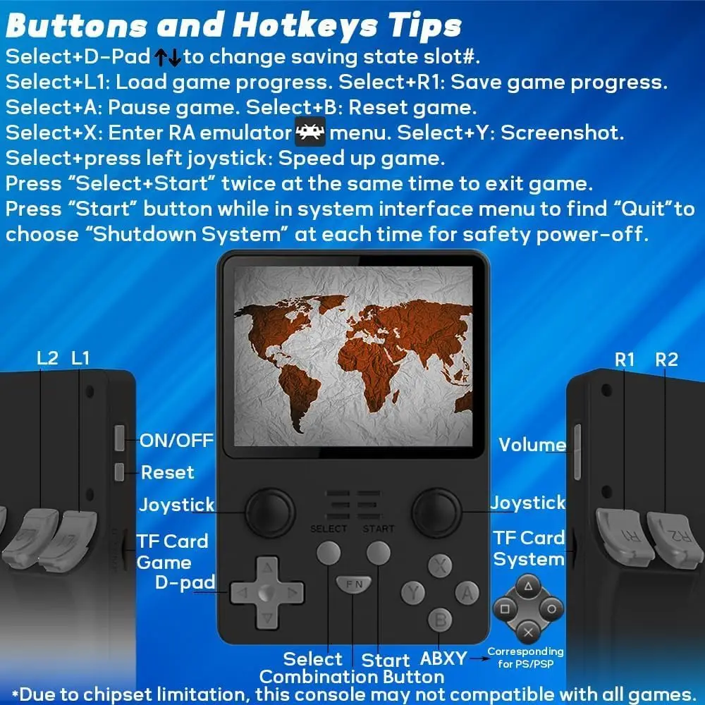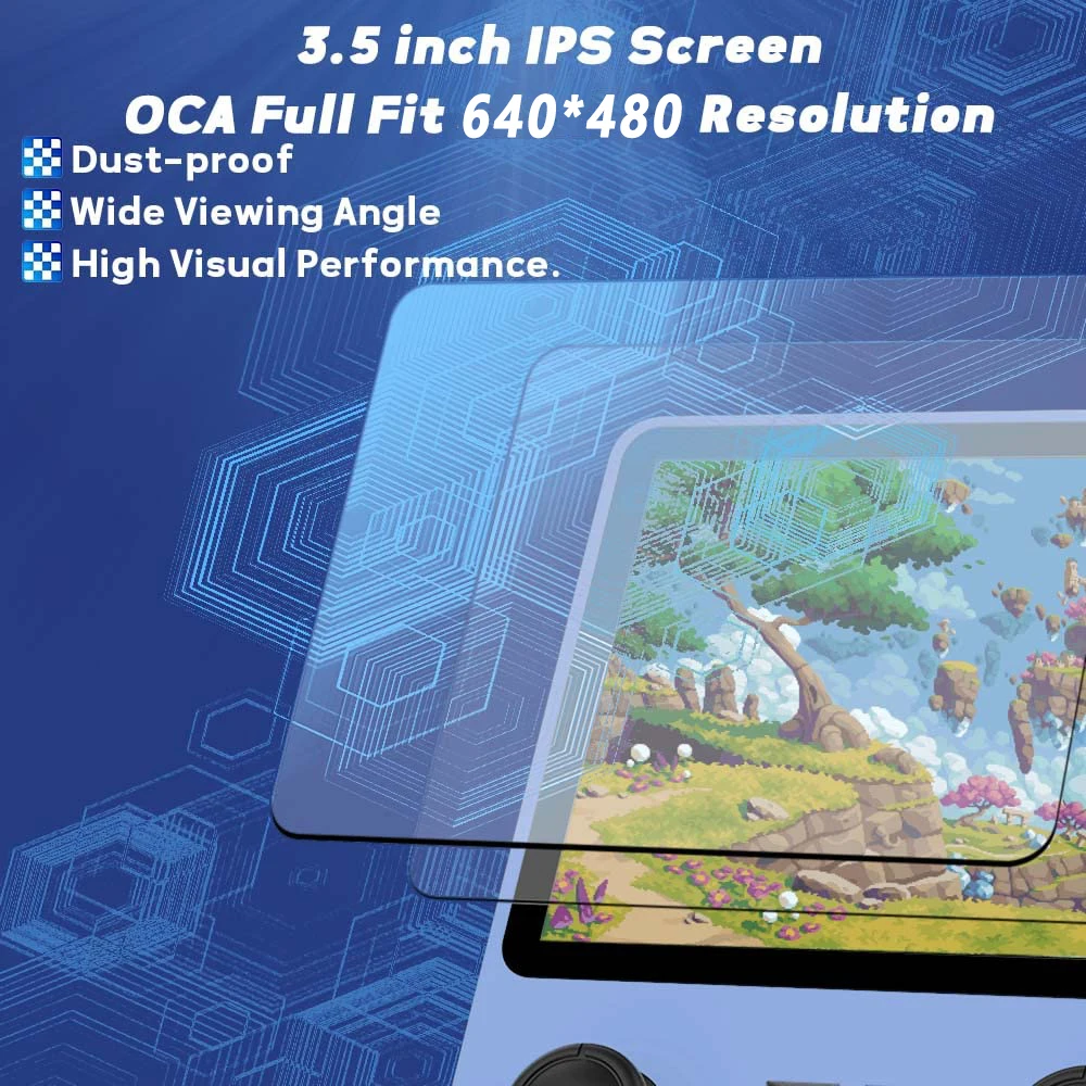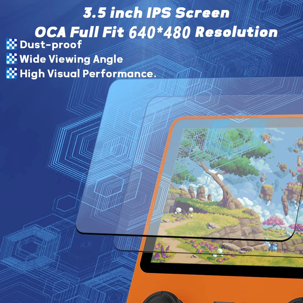 🕹【Pantalla IPS de 3,5 pulgadas 】 640x480 resolución HD OCA laminación completa. Doble protección a prueba de arañazos y anticaída, aporta una experiencia de juego emocionante y una mejor protección ocular.
