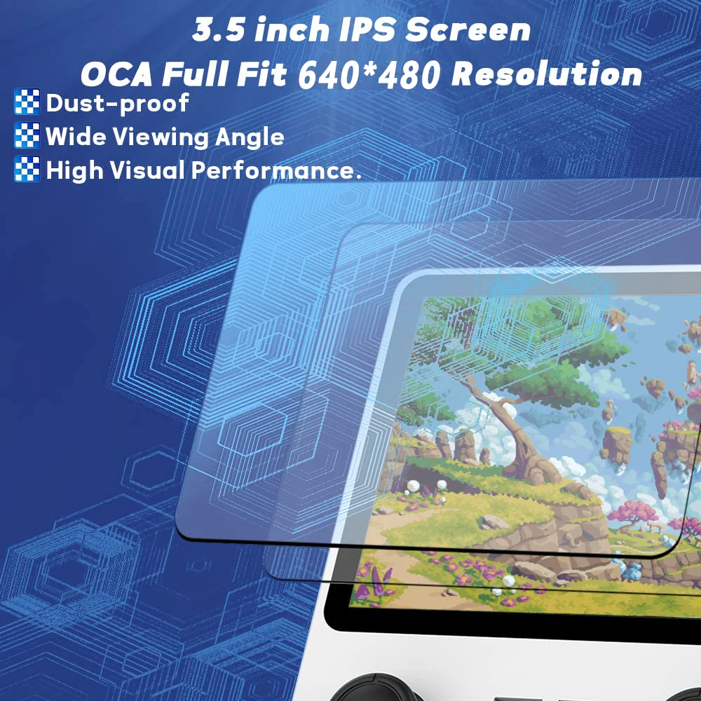 🕹【Pantalla IPS de 3,5 pulgadas 】 640x480 resolución HD OCA laminación completa. Doble protección a prueba de arañazos y anticaída, aporta una experiencia de juego emocionante y una mejor protección ocular.