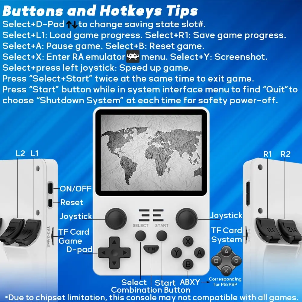 La potente potencia de cálculo, la velocidad de procesamiento más rápida y la mayor calidad de imagen de alta definición del chip de alto rendimiento permiten al host ejecutar la mayoría de los juegos e incluso juegos en 3D sin problemas, reduciendo los retrasos. Puede jugar a juegos de PSP como Dynasty Warriors. Exclusivo sistema ArkOS Linux, configuración predeterminada en inglés y funciones de guardar y cargar, no más datos perdidos y comenzar de nuevo, brindándole una excelente experiencia de juego.