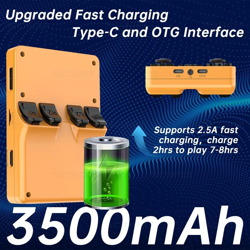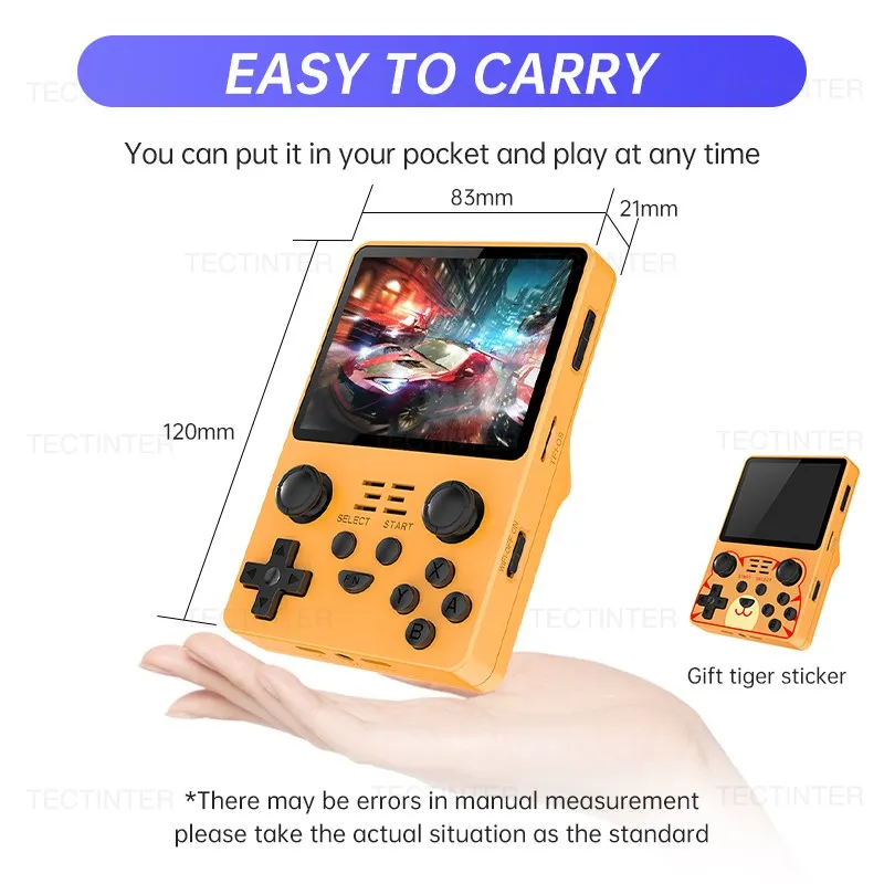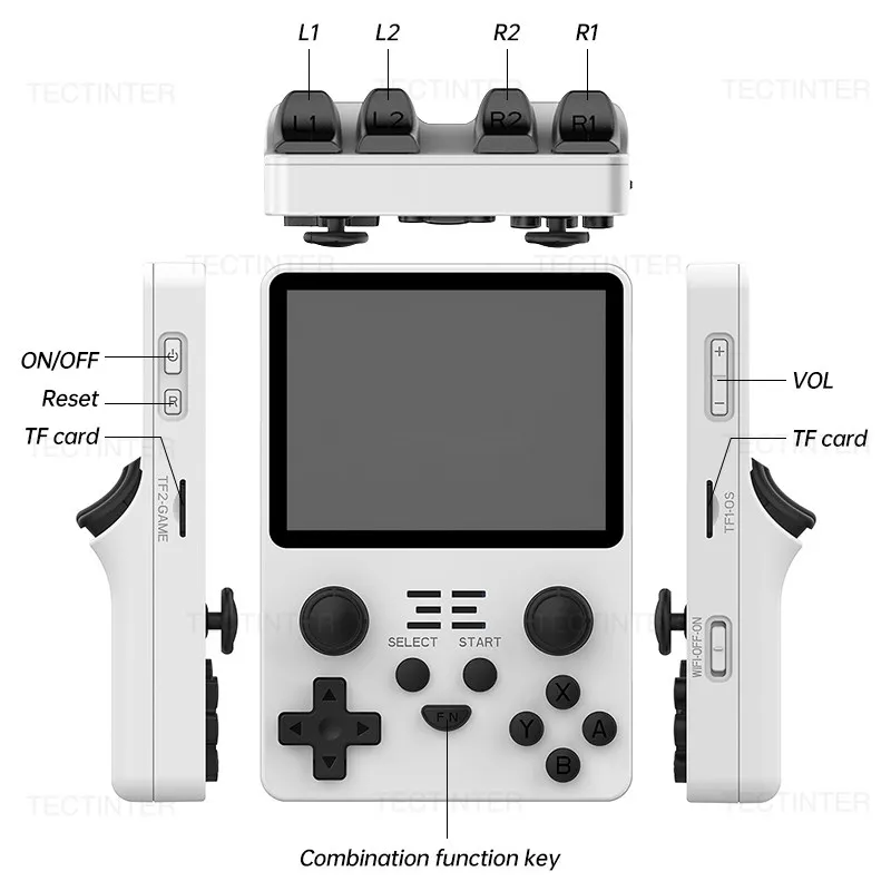 Sistema independiente de tarjeta TF dual y diseño de almacenamiento de juegos, no es necesario copiar el juego para actualizar el sistema. Soporte máximo para expansión de tarjeta de sistema 256G. Memoria incorporada de 16G, equipada con tarjeta de juego de memoria de 32GB/64GB/128GB/256GB.