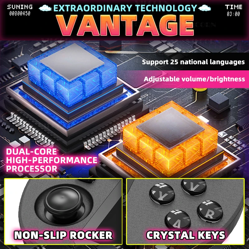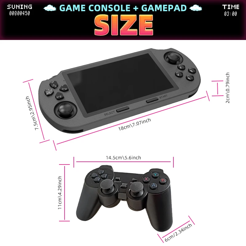 Esta consola portátil no es sólo para jugar en solitario.Conecte un controlador y disfrute del doble de la emoción con juegos para dos jugadores.Con soporte para múltiples funciones, es el dispositivo perfecto para compartir momentos de juego con amigos.¡Que comience la diversión!