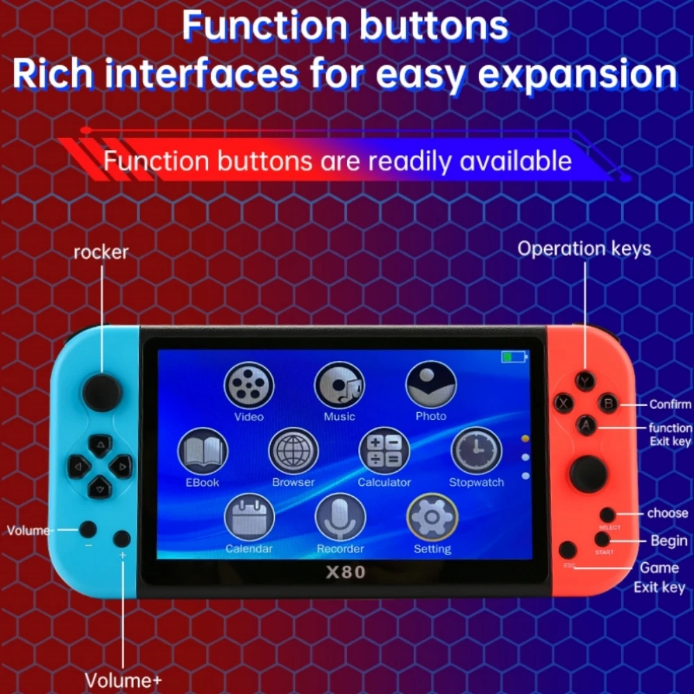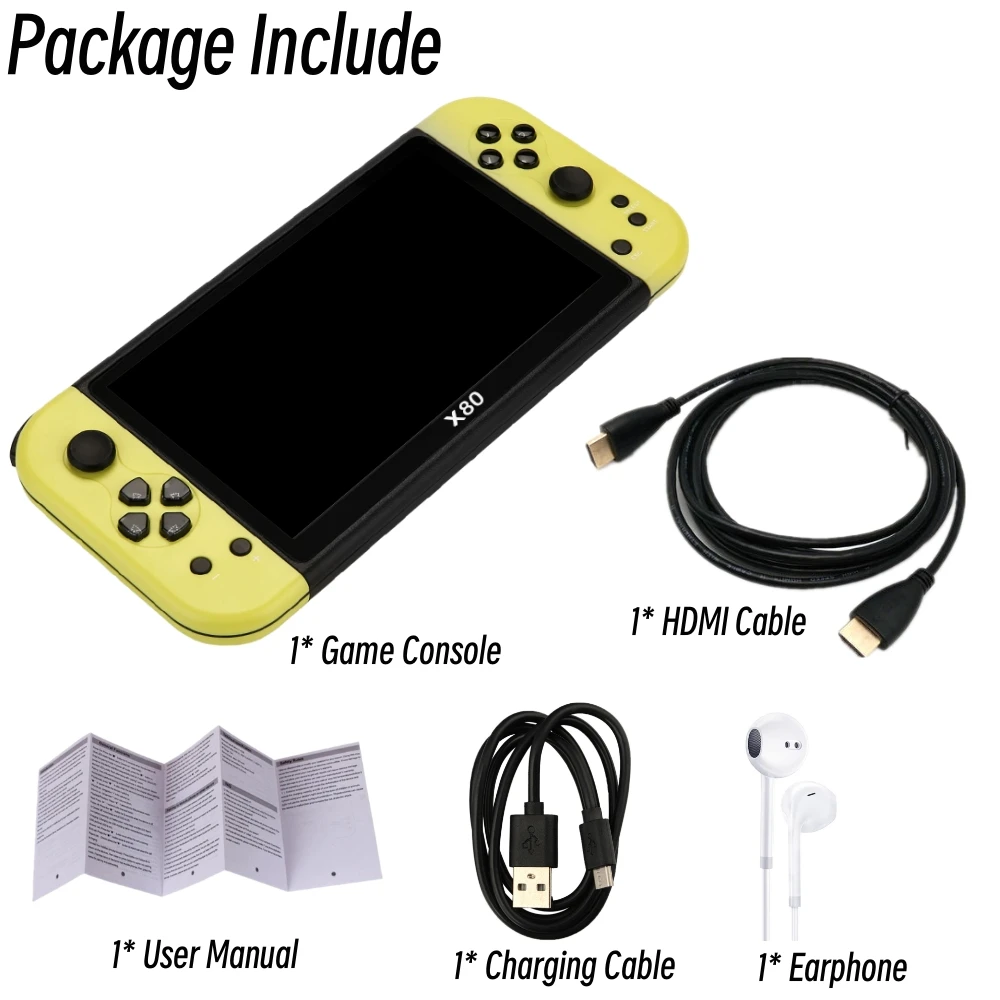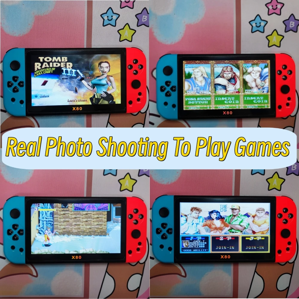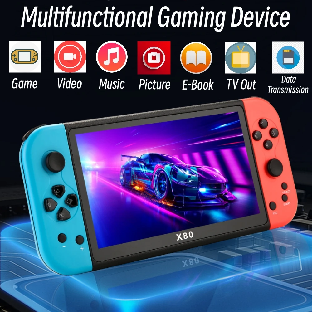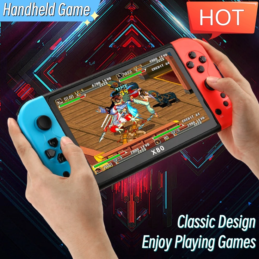 Comprar Consola de juegos portátil X80, 10000 juegos gratis, pantalla de 7 pulgadas, reproductor de juegos portátil de 16GB para PS1/MAME, juego recreativo Retro, compatible con salida de TV