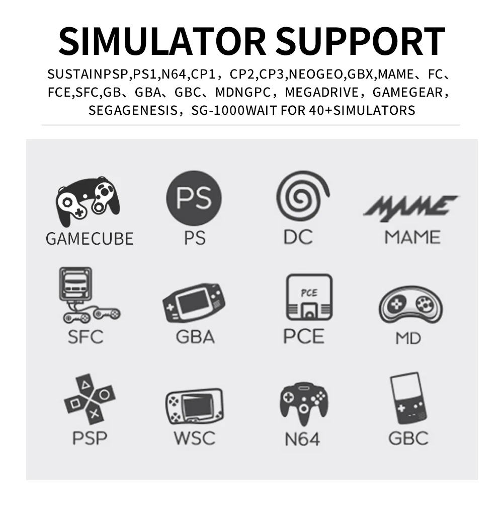 Tipos de juego compatibles con PSP, PS1, N64, CP1, CP2, CP3, Neogeo, GBX, MAME, FC, FCE, SFC, GB, GBA, GBC, MDNGPC, MEGADRIVE, GAMEGEAR, SEGAGENESIS, más de 50 y otros más de 50 emuladores,