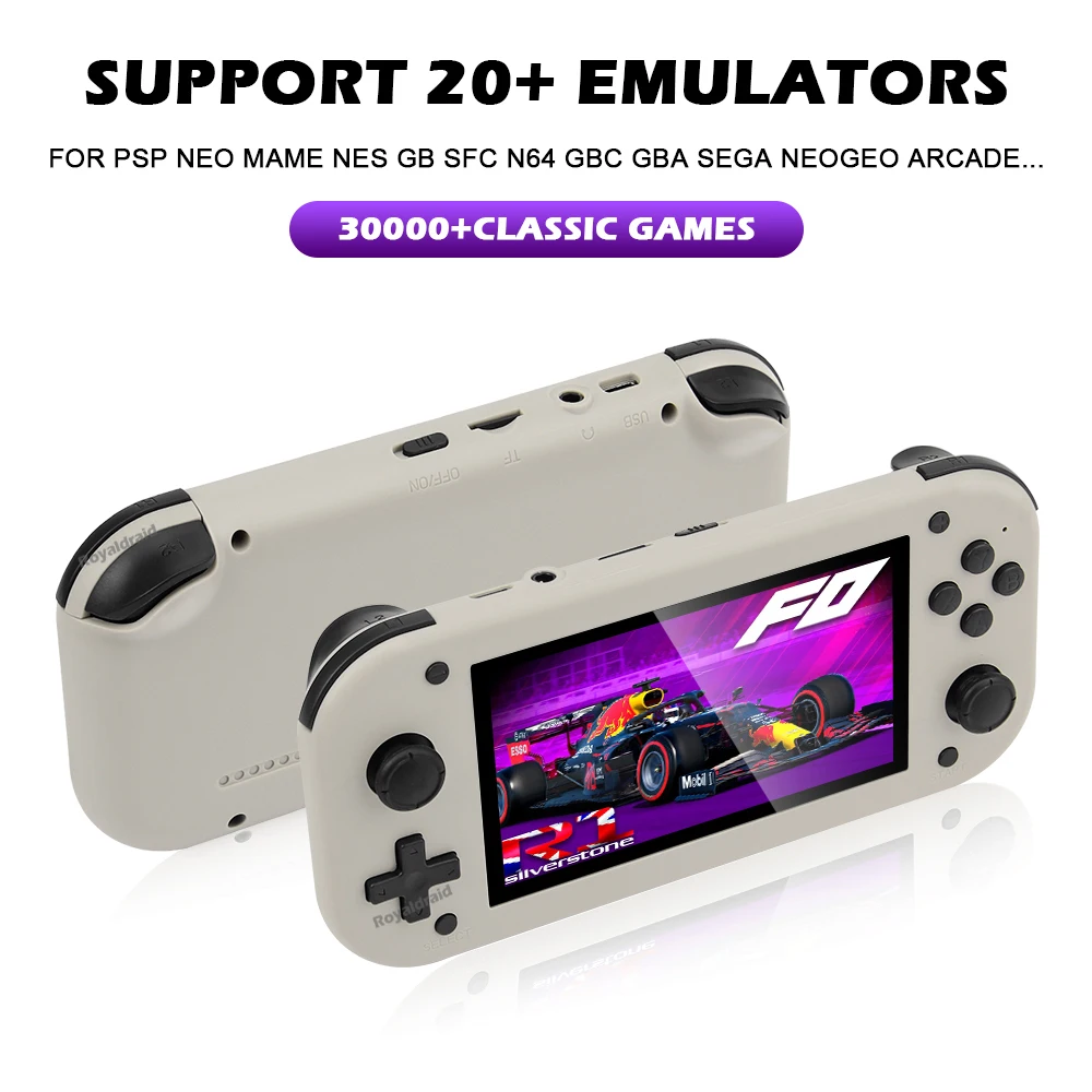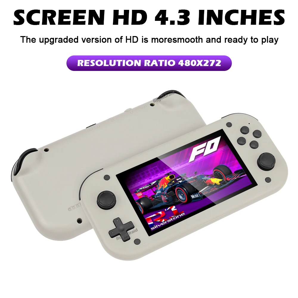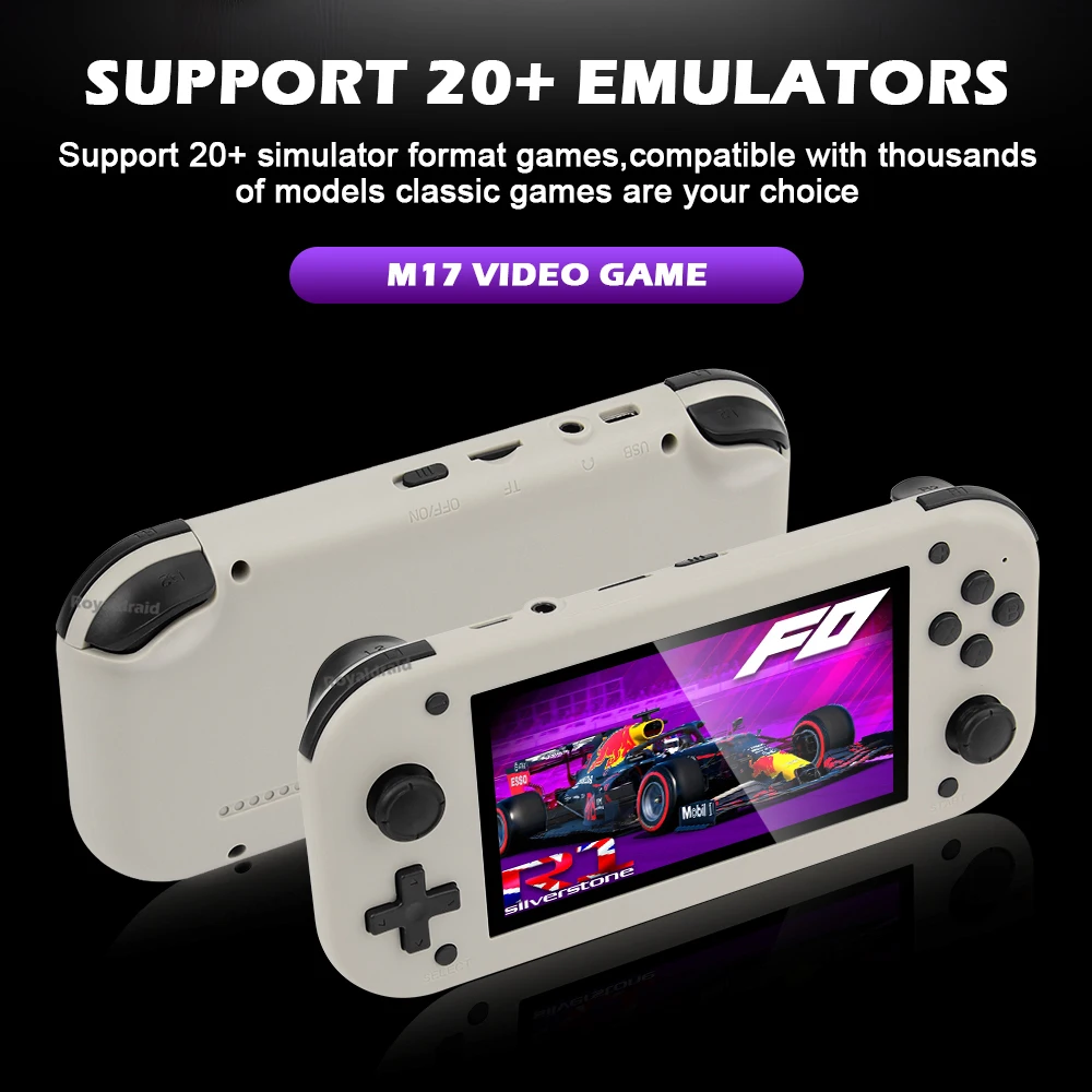 Dropshipping nuevo juego Retro M17 consola de juegos portátil pantalla IPS de 4,3 pulgadas reproductores de videojuegos Retro incorporados 20000 + juegos 64G 128GCaracterística:Pantalla de 4,3 pulgadas: el efecto de visualización es muy claro, brinda una experiencia de juego emocionante y una mejor protección ocular.Resolución de pantalla de 480x272, disfrute de una pantalla clara y nítidaRocker 3D original: balancín de juego especial para arcade, alta sensibilidad, diseño antideslizante.Idioma: multilingüe, 30 idiomasCPU: Quad-core de hasta 1,2 ghZ, de hasta Memoria: DDR 256MB Almacenamiento: 64GB/128GB (opcional)25 simuladores integrados. Admite una variedad de tipos de juegos.Portátil y conveniente: fácil de transportar.Descripción:Nombre del producto: consola de juegos portátil M17 Sistema operativo: EmuELEC