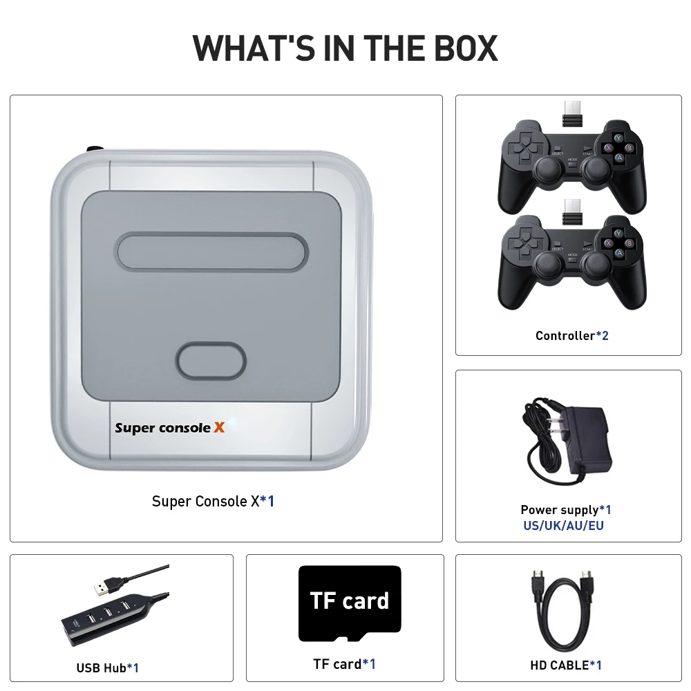 Mini consola de videojuegos retro Super Console X2, preinstalada110000+ juegos clásicos, Amlogic S905X2 de cuatro núcleos de 64 bits, el juego funciona sin problemas.