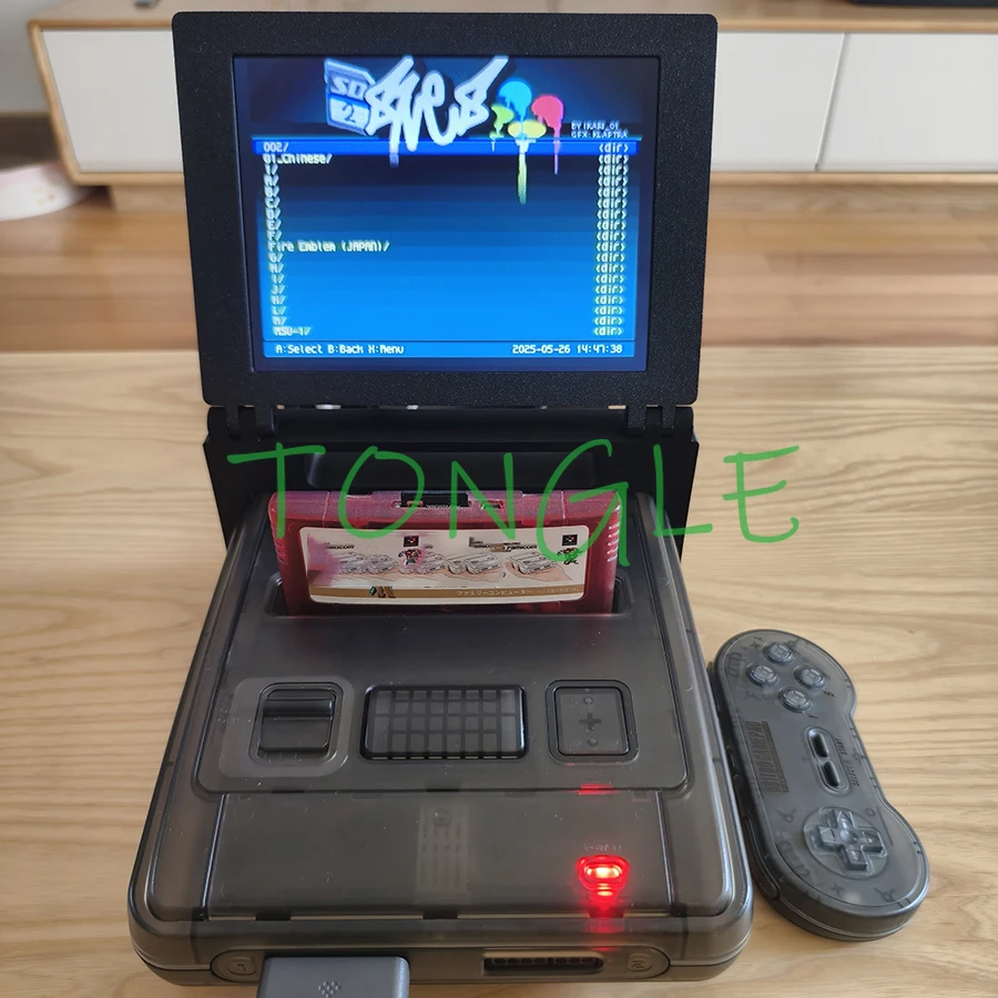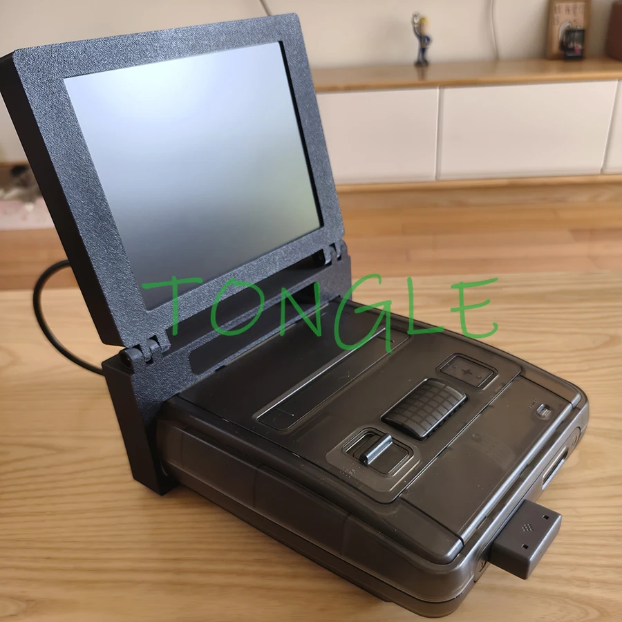 Consola de juegos transparente negra de hardware súper Retro SFC, para cartucho de juego SFC/SNES, compatible con monitor plegable portátil LCD 4:3 de 8 pulgadas