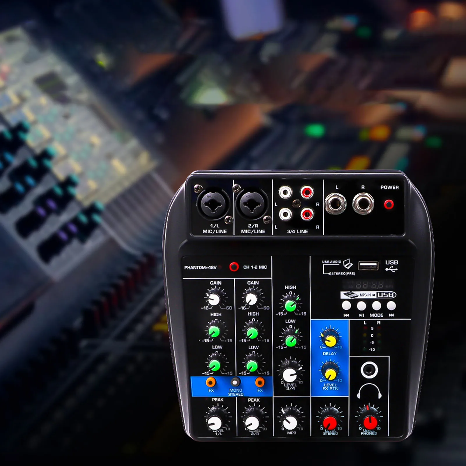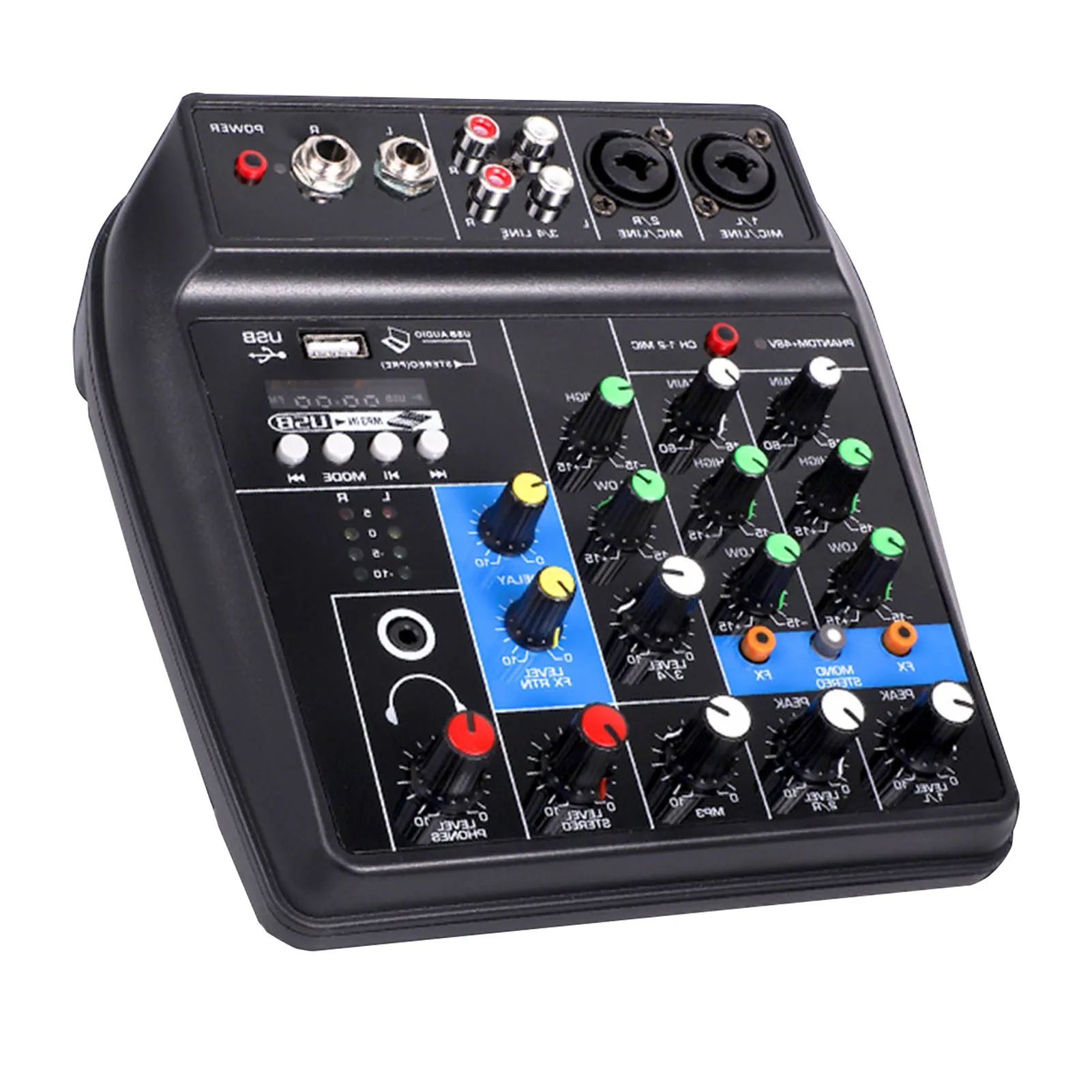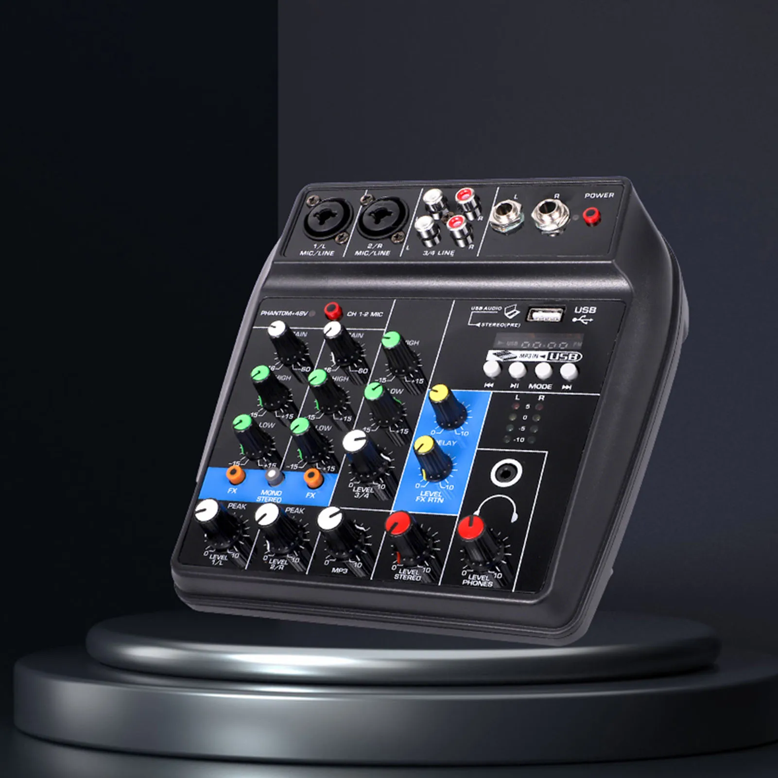 Ecualización de tres bandas: cada canal mono tiene un ecualizador de tres bandas, que es conveniente para el ajuste de tono fino de la voz/música.