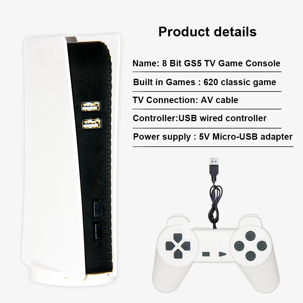 Comprar Consola de videojuegos GS5, Mini TV, consola de juegos Handhel, Gamepads con cable, videojuego 620, juego Retro, salida HD, dos jugadores