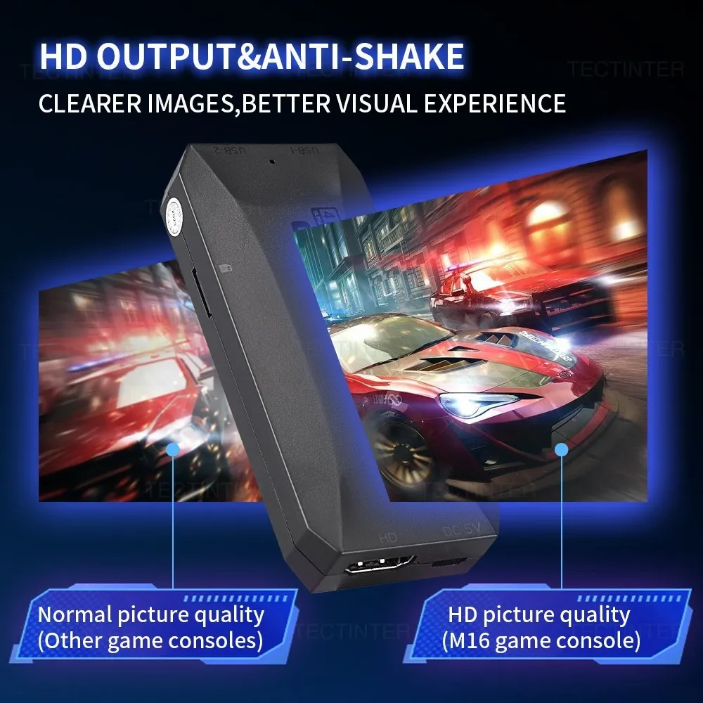 La consola retro admite salida 4K HD, con una calidad de imagen más clara, y esta consola de videojuegos es adecuada para TV/ordenador/monitor/proyector de ultra alta definición, admite conexión compatible con HDMI, puede disfrutar de juegos retro en el sofá con su familia o amigos