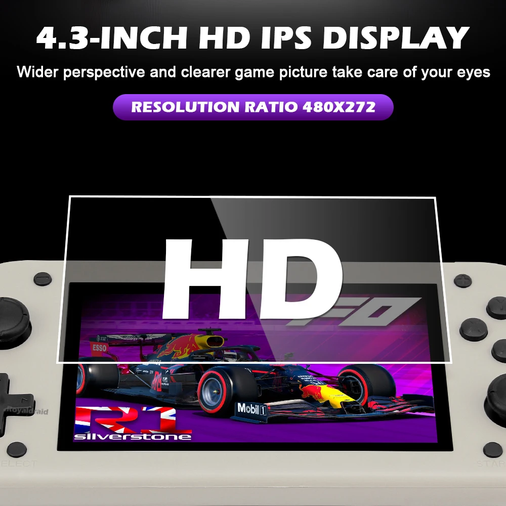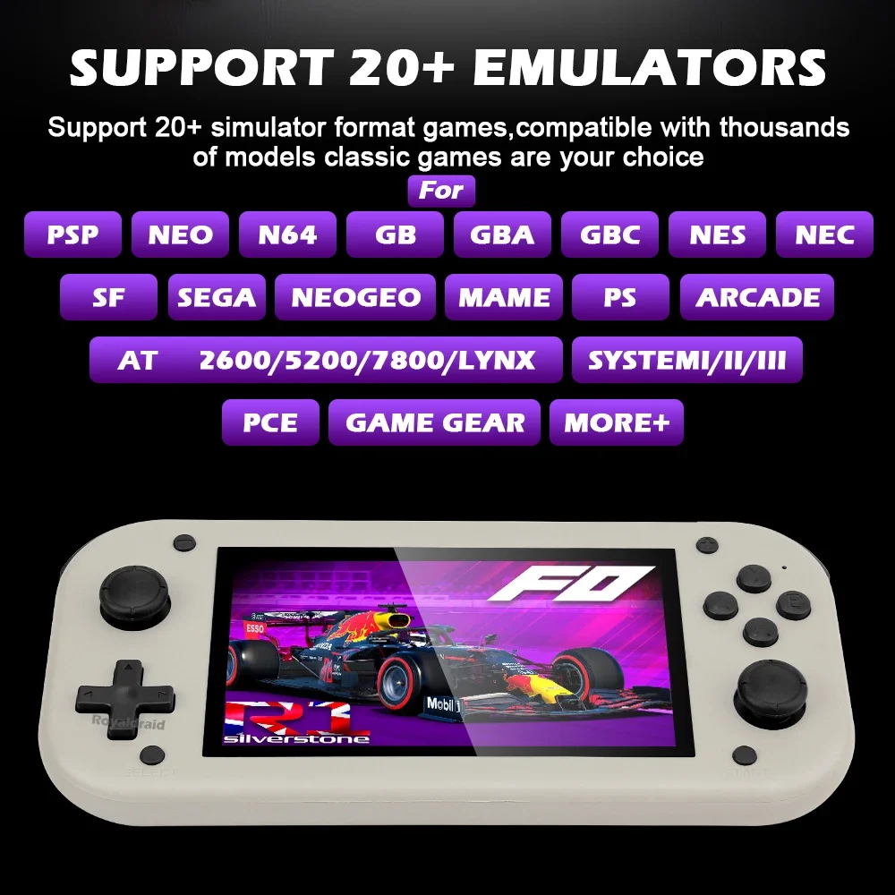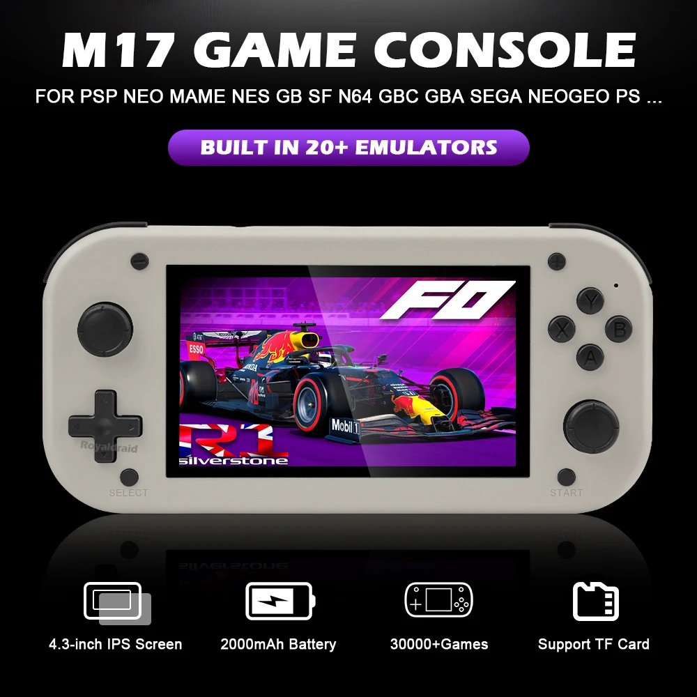 Nueva consola de videojuegos portátil Retro M17 mejorada, sistema Linux de código abierto, pantalla IPS de 4,3 pulgadas, reproductor de vídeo portátil 64G 128GCaracterística:Pantalla de 4,3 pulgadas: el efecto de visualización es muy claro, brinda una experiencia de juego emocionante y una mejor protección ocular.Resolución de pantalla de 480x272, disfrute de una pantalla clara y nítidaRocker 3D original: balancín de juego especial para arcade, alta sensibilidad, diseño antideslizante.Idioma: multilingüe, 30 idiomasCPU: Quad-core de hasta 1,2 ghZ, de hasta Memoria: DDR 256MB Almacenamiento: 64GB/128GB (opcional)25 simuladores integrados. Admite una variedad de tipos de juegos.Portátil y conveniente: fácil de transportar.Descripción:Nombre del producto: consola de juegos portátil M17 Sistema operativo: EmuELEC.