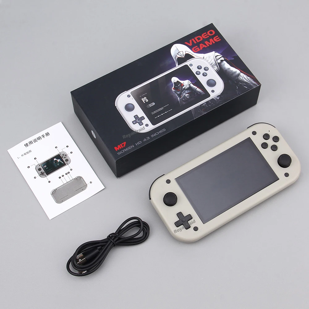 1 cable USB C1 manual de usuarioNota:Comprar Consola de videojuegos portátil Retro M17 mejorada, sistema Linux de código abierto, pantalla IPS de 4,3 pulgadas, reproductor de vídeo portátil, 64G, 128G