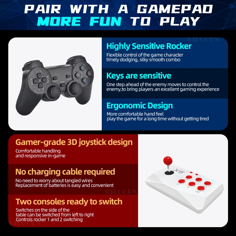 2.40.000 juegos retro clásicos no se repiten, admiten 15 emuladores clásicos como: Para WSC /SEGA/GBA/NGPC/SNES/PCE/NES/ATARI/SMS/FBA/PS1/GB/GBC/MAME/GG