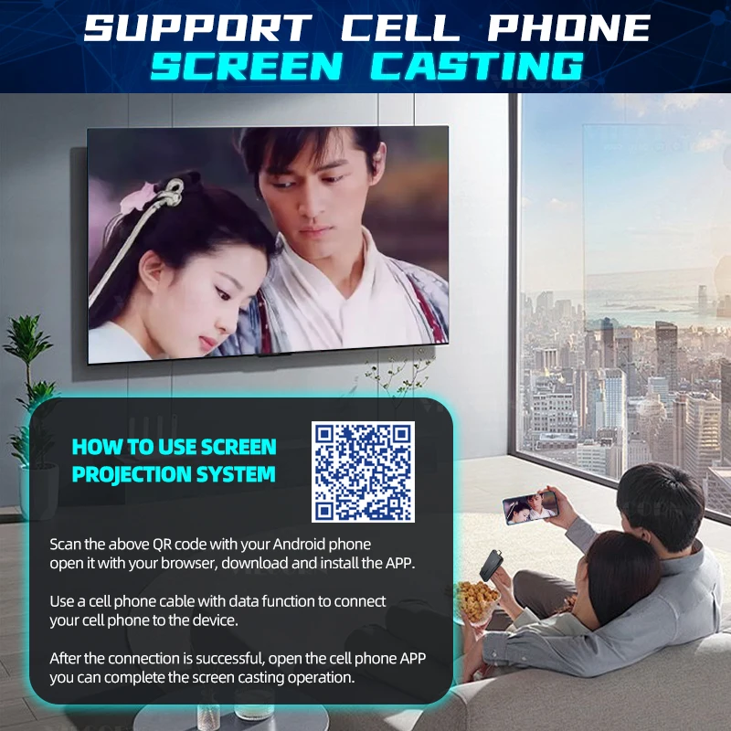 1.Solo necesita un cable de datos de transmisión, puede lograr la transmisión de pantalla del teléfono móvil, transformar sus fotos o videos favoritos en el televisor o proyector;