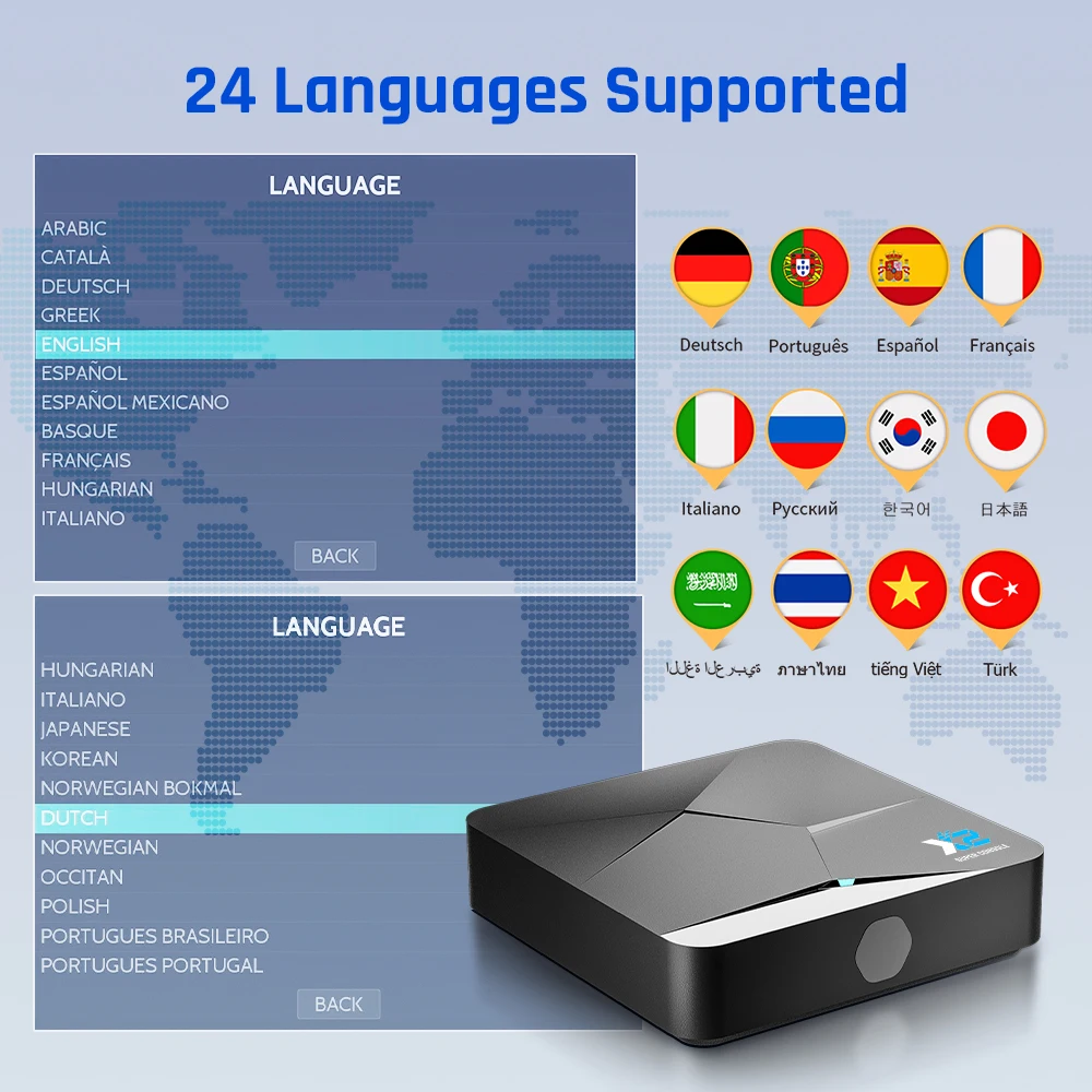 La Super Consola X2 es compatible con inglés, portugués, alemán, francés, coreano, español, polaco, ruso y japonés. ¡Darle una experiencia de juego más cómoda y familiar!