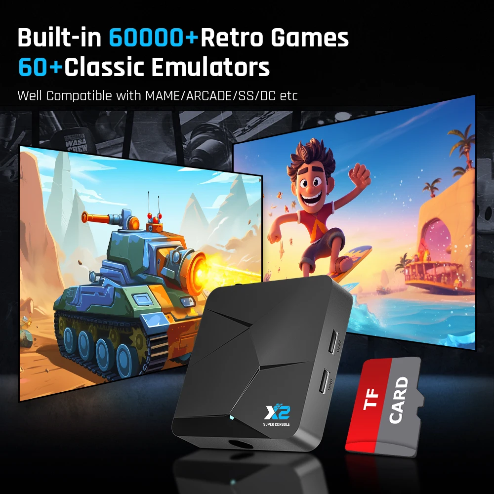 La consola de videojuegos Super Console X2 está equipada con un procesador de arquitectura ARM de cuatro núcleos, pero la GPU se actualiza a MP2 y el juego se ejecuta sin problemas. El rendimiento es comparable al del S905X3, y la relación precio/rendimiento es muy alta