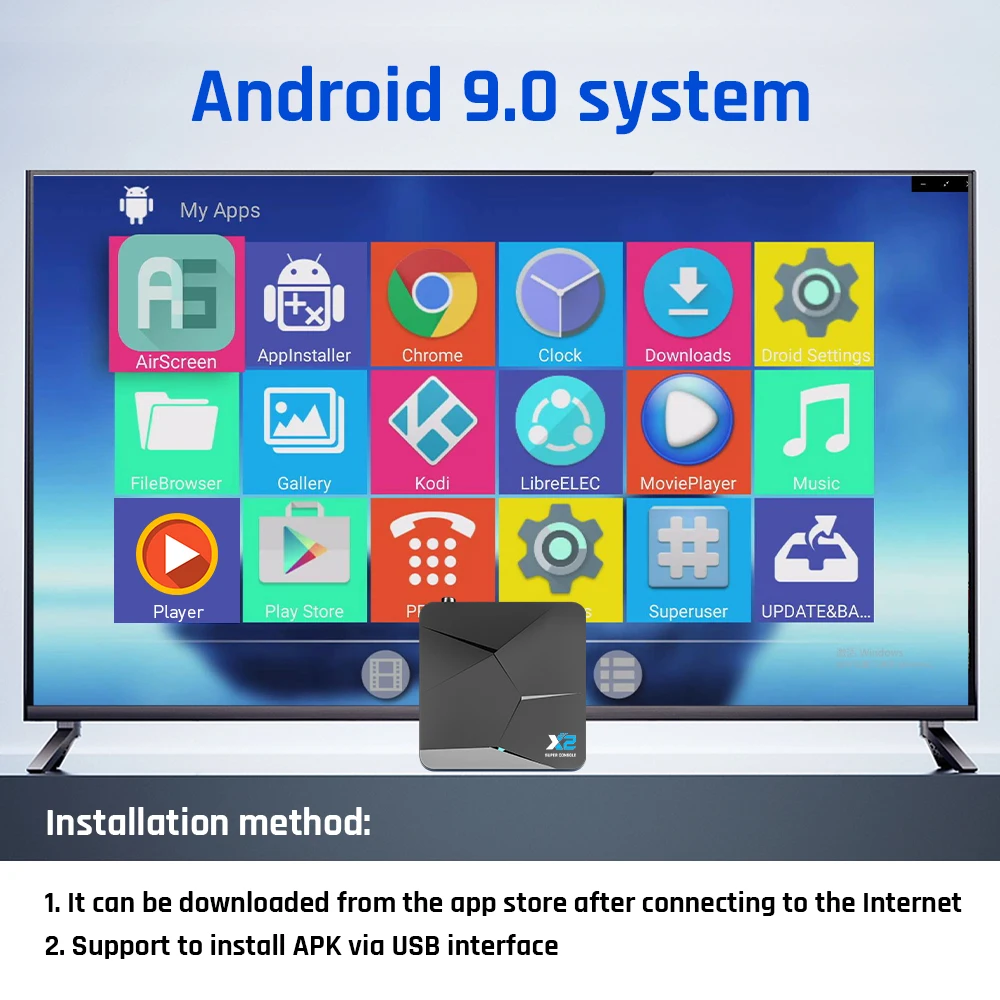 También es una TV Box equipada con el sistema operativo Android 9,0, que ha optimizado el contenido anterior y funciona de manera más fluida. Puede ver vídeos en línea, descargar e instalar APK en la tienda de aplicaciones.
