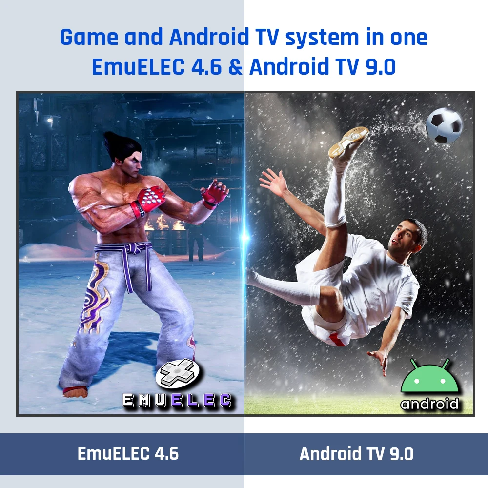♥TV Box y consola de juegos dos en uno, sistema dual Android 9,0 y EmuELEC 4,6