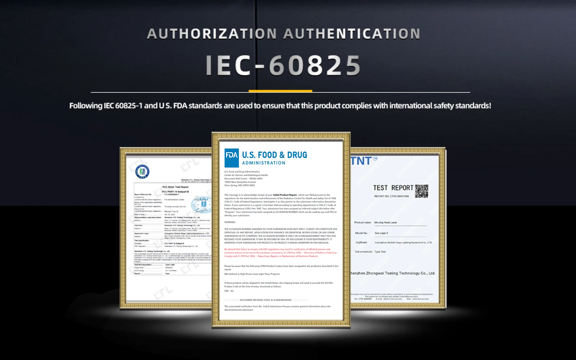 ¡Todos los equipos láser producidos por nuestra empresa cumplen con los estándares IEC 60825-1 y U S. FDA que se utilizan para garantizar un uso seguro!