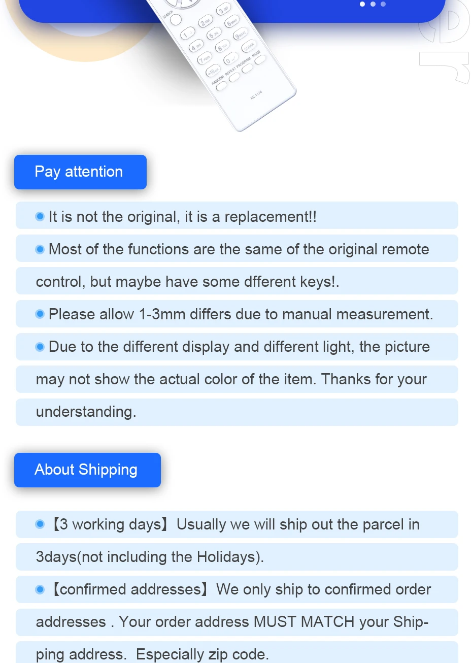 Asegúrese de que este es el control remoto correcto antes de realizar el pedido. Gracias ~