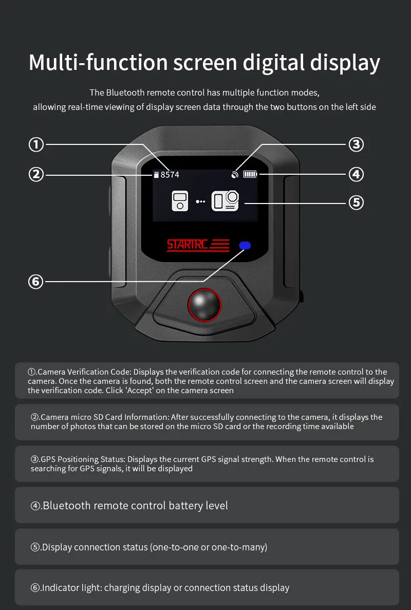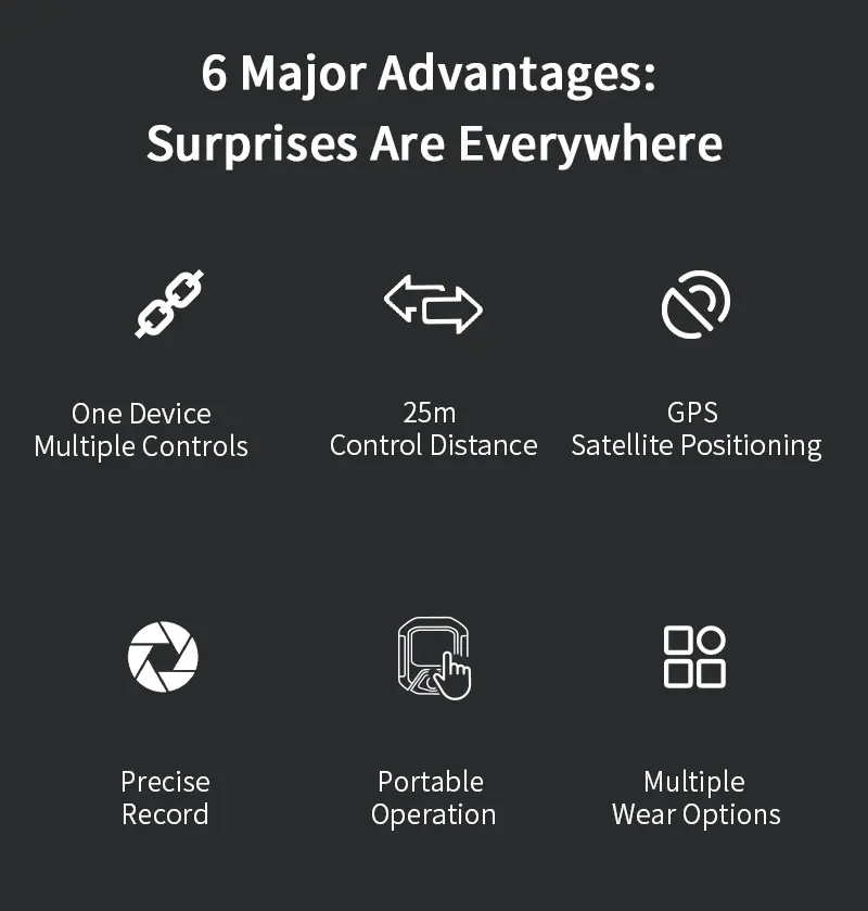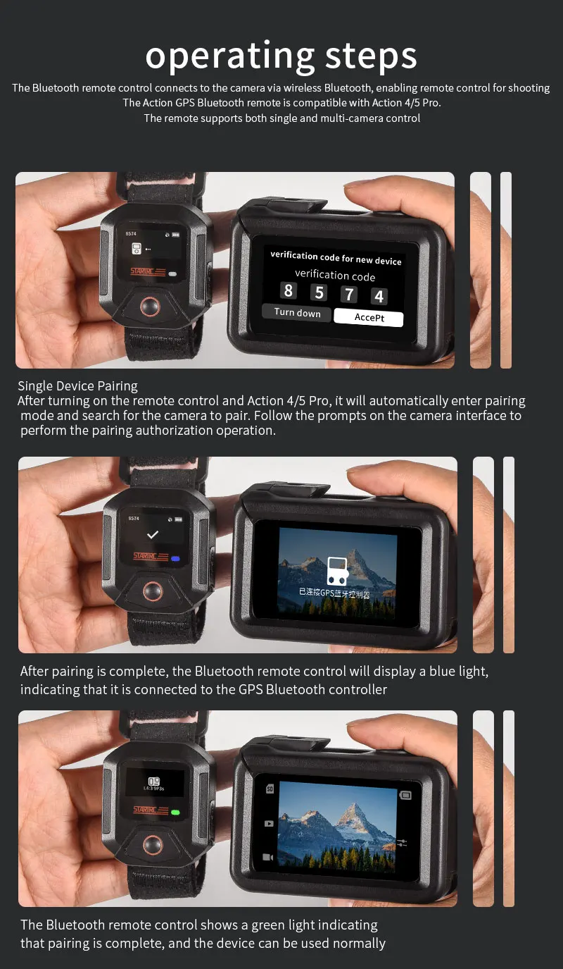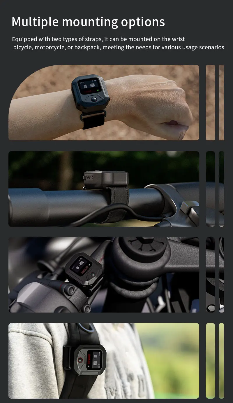 Un solo control remoto se puede emparejar con varias cámaras, lo que mejora la eficiencia de la colaboración en equipo;Equipado con correas de montaje duales compatibles con muñecas, bicicletas, mochilas y más, satisfaciendo las necesidades de instalación para esquiar, andar en bicicleta, hacer senderismo y otros escenarios.