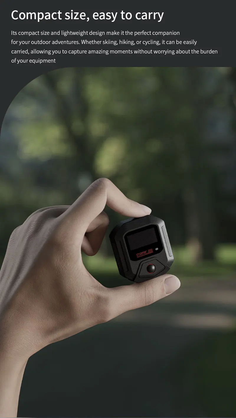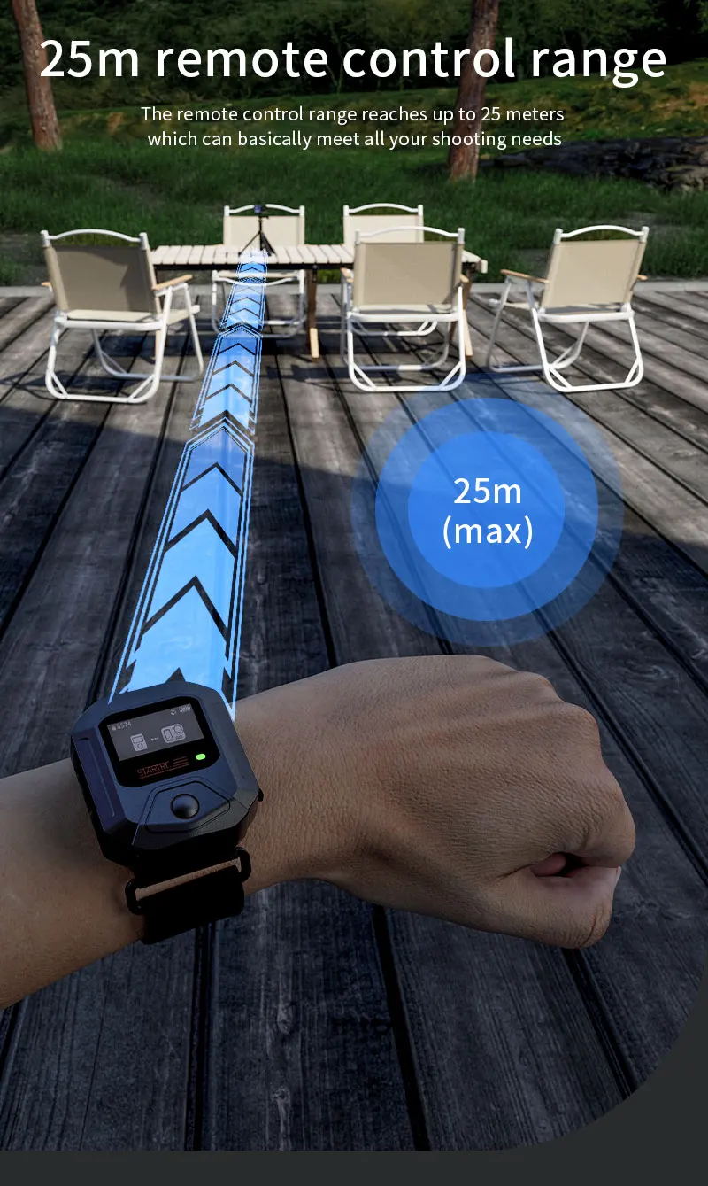 Con un alcance de control remoto de hasta 25 metros, satisface las necesidades de tiro de larga distancia para actividades como esquí, ciclismo y montañismo.No es necesario acercarse con frecuencia a la cámara, lo que le permite capturar fácilmente momentos dinámicos y emocionantes.