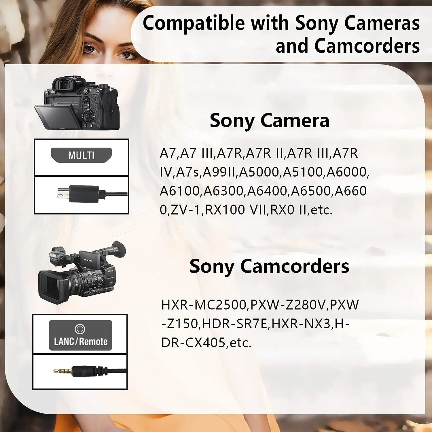 Control remoto inalámbrico para cámara, temporizador, controlador de Zoom, Cable MultiTerminal para Sony A6600, A9, AXP55, AX700, FX6, FX1000E, FS5, X160, FX7