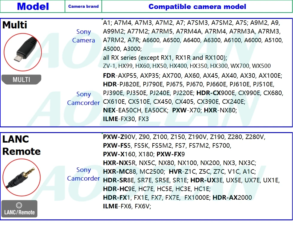 Comprar Control remoto inalámbrico para cámara, temporizador, controlador de Zoom, Cable MultiTerminal para Sony A6600, A9, AXP55, AX700, FX6, FX1000E, FS5, X160, FX7