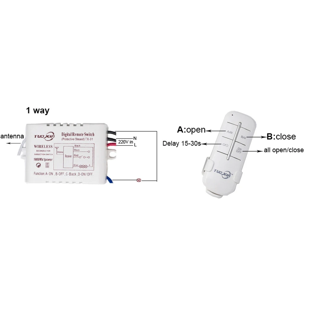 4. Control remoto completo de radiofrecuencia inalámbrica de 360 ", distancia ≥ 20 metros, puede penetrar en la pared, con función de retardo