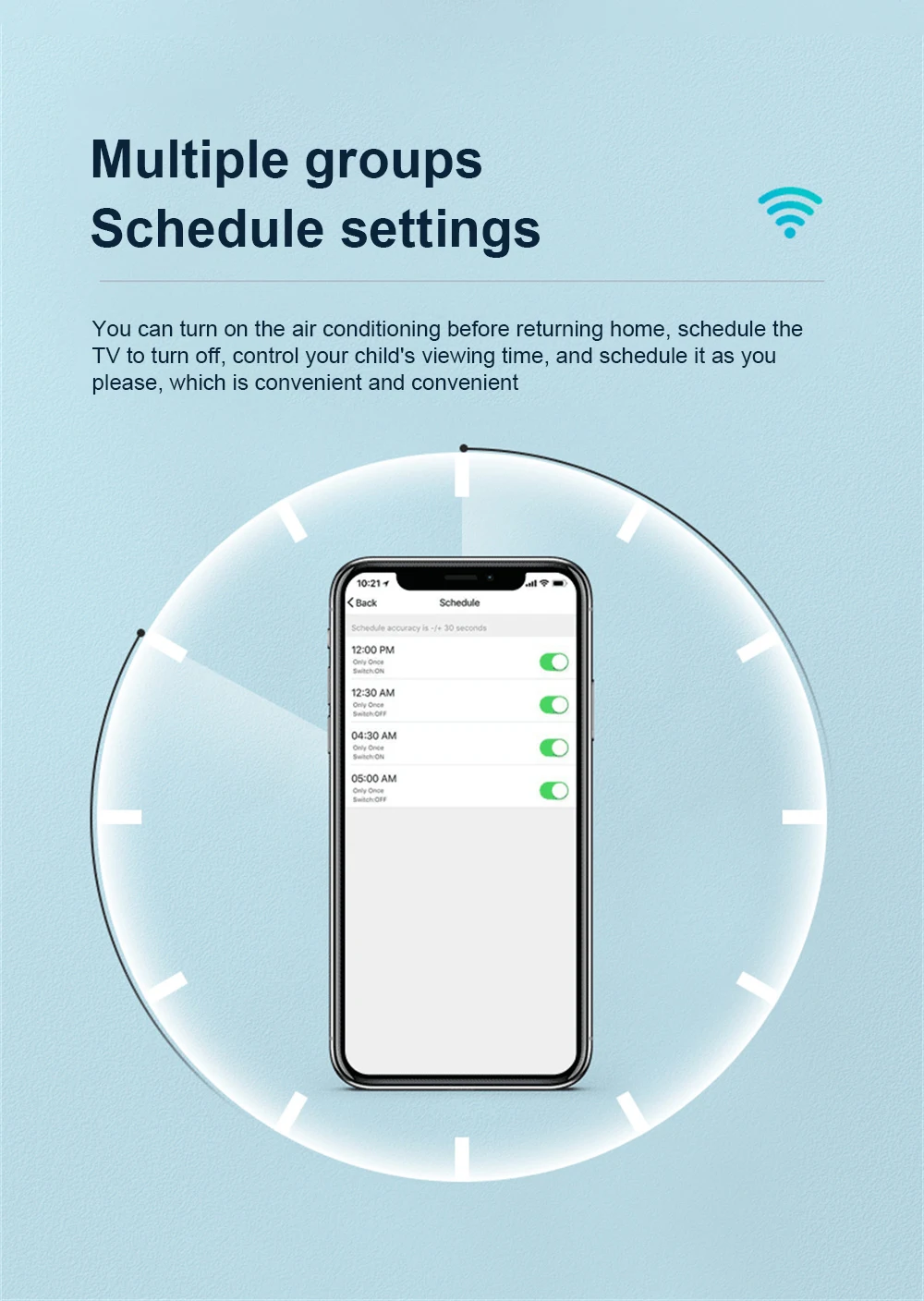 De acuerdo con sus hábitos de vida, configure interruptores de tiempo para sus electrodomésticos, como encender/apagar el aire acondicionado a intervalos regulares.