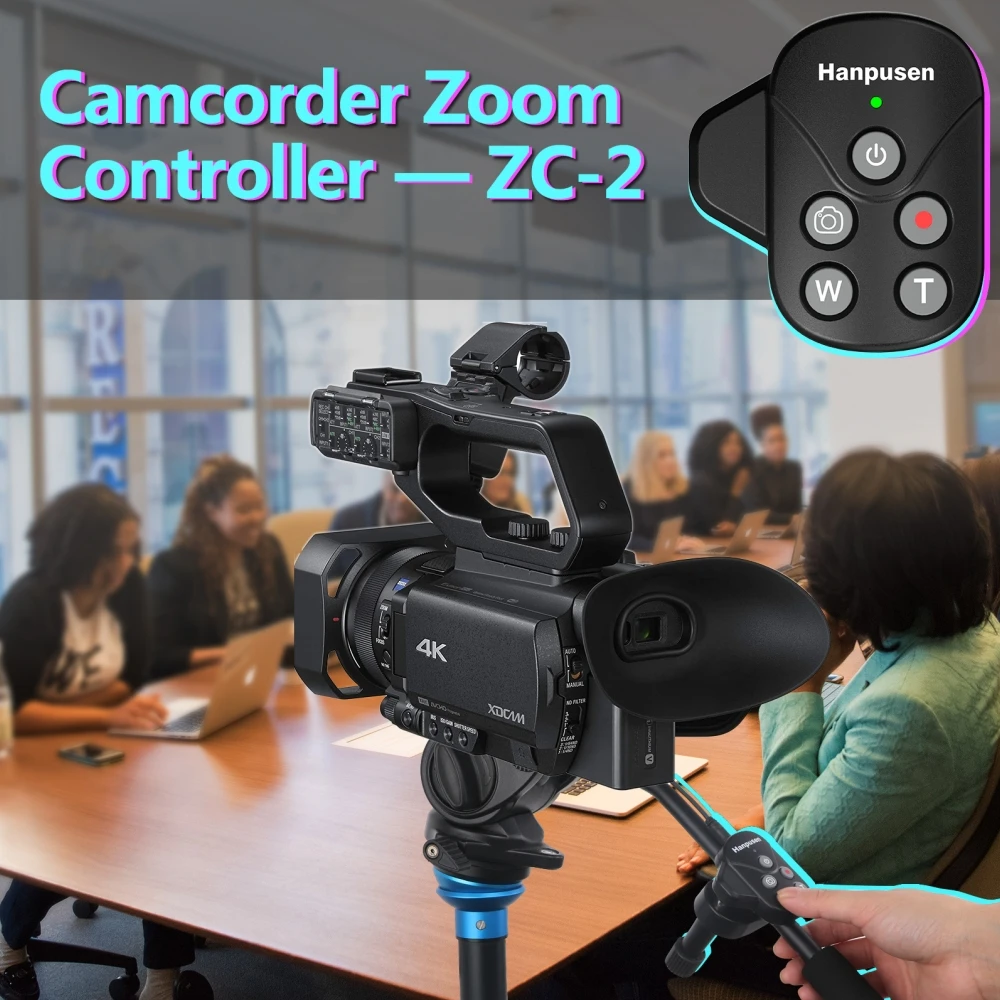 El controlador de zoom de videocámara Hanpusen ZC-2 proporciona controles de zoom, grabación de vídeos y toma de fotografías* paraSony y Canonvideocámaras equipadas con un terminal REMOTO o LANC.El ZC-2 se puede operar fijándolo al mango de la bandeja del trípode utilizando la abrazadera de montaje proporcionada.Los botones de zoom tienen 2 pasos: presionando la mitad de camino y presione por completo para regular el zoom lenta y rápidamente.