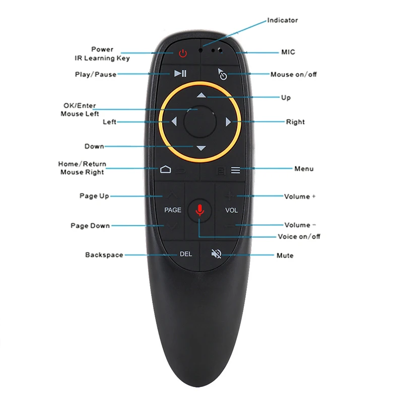 Comprar Control remoto por voz G10S Air Mouse, giroscopio inalámbrico de 2,4G, aprendizaje IR para H96 MAX, X88 PRO, X96 MAX, Android TV Box HK1