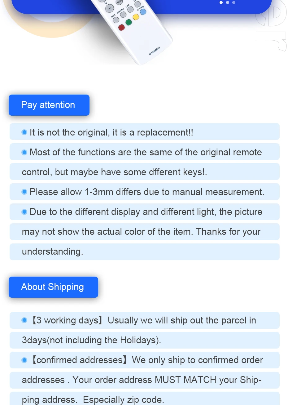 Asegúrese de que este es el control remoto correcto antes de realizar el pedido. Gracias ~