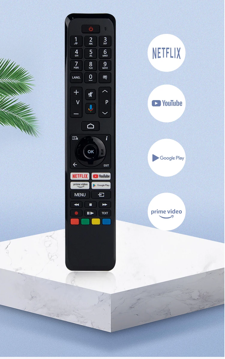 El control remoto funciona con la TV Toshiba. El control por voz también funciona. Lo recomiendo.