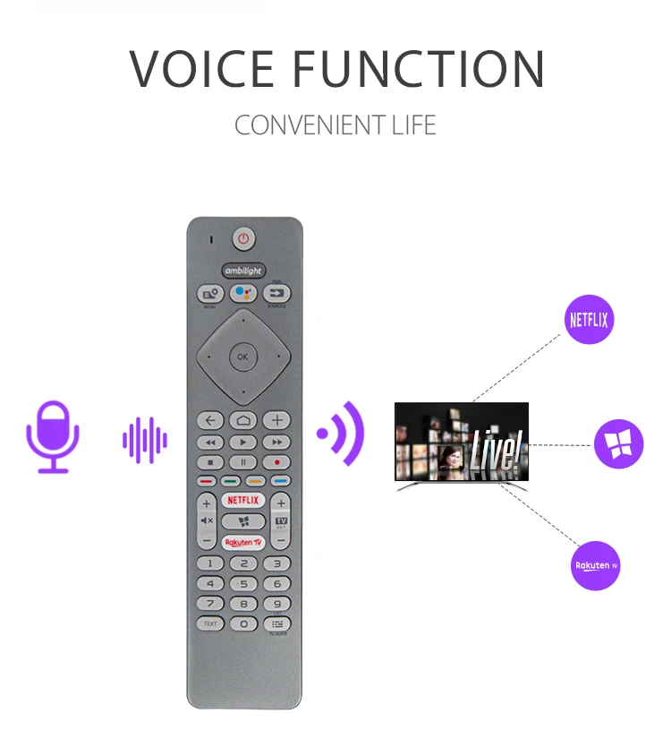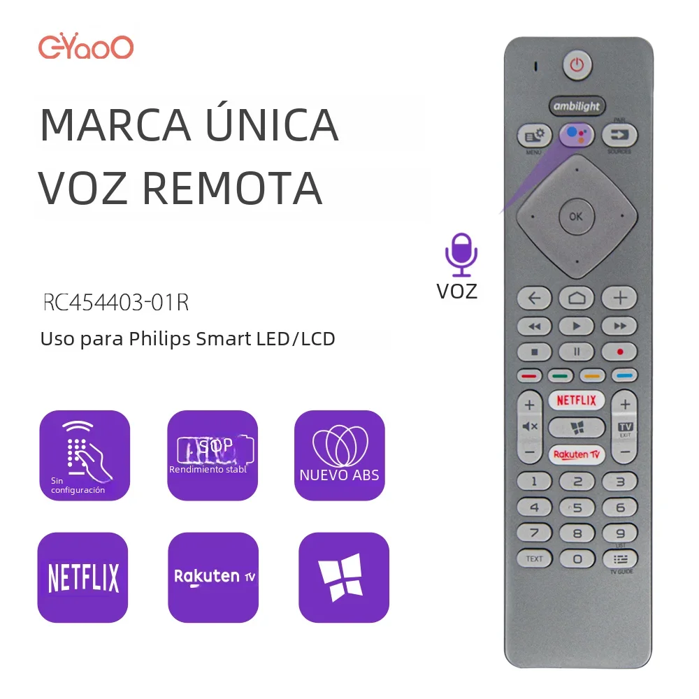 Comprar Control remoto de TV por voz RC 454403 -01R 398GM10BEPHN0012PH NETFLIX Rakuten Botones de TV Busca de voz de Google para Philips