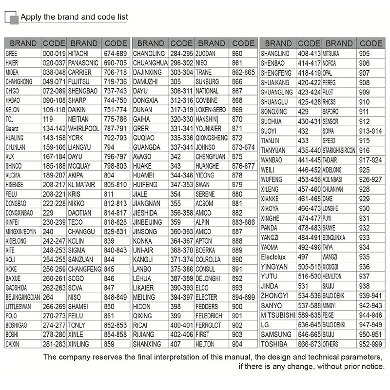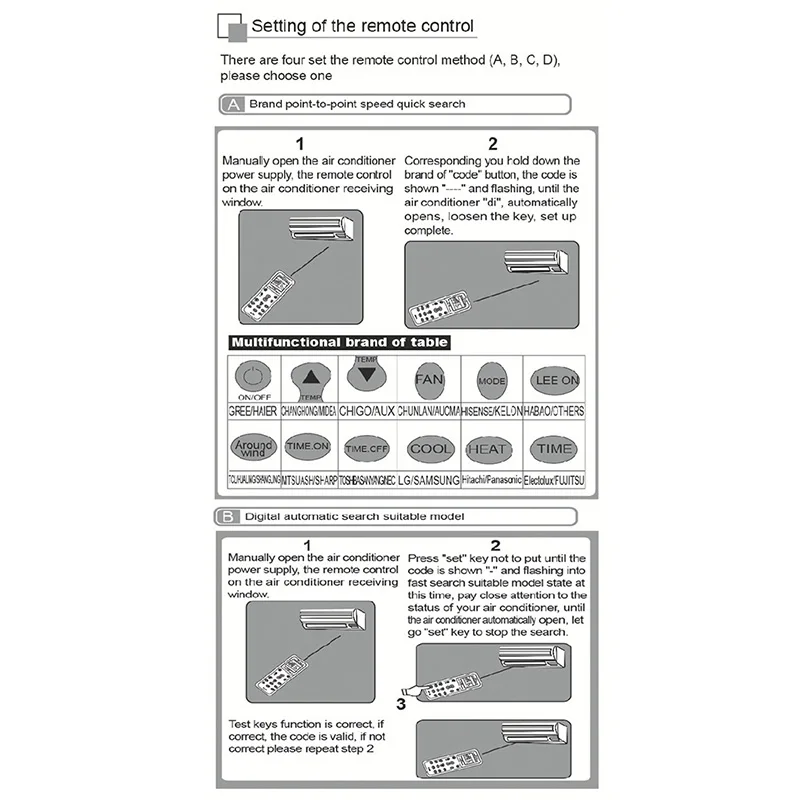 El mando a distancia es adecuado para la mayoría de modelos de aire acondicionado de todas las marcas.