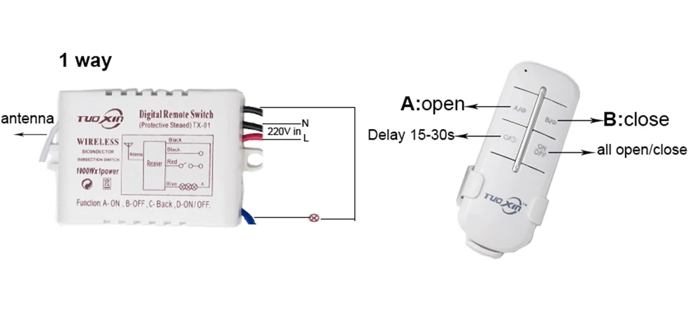 4. Control remoto completo de radiofrecuencia inalámbrica de 360 ", distancia ≥ 20 metros, puede penetrar en la pared, con función de retardo