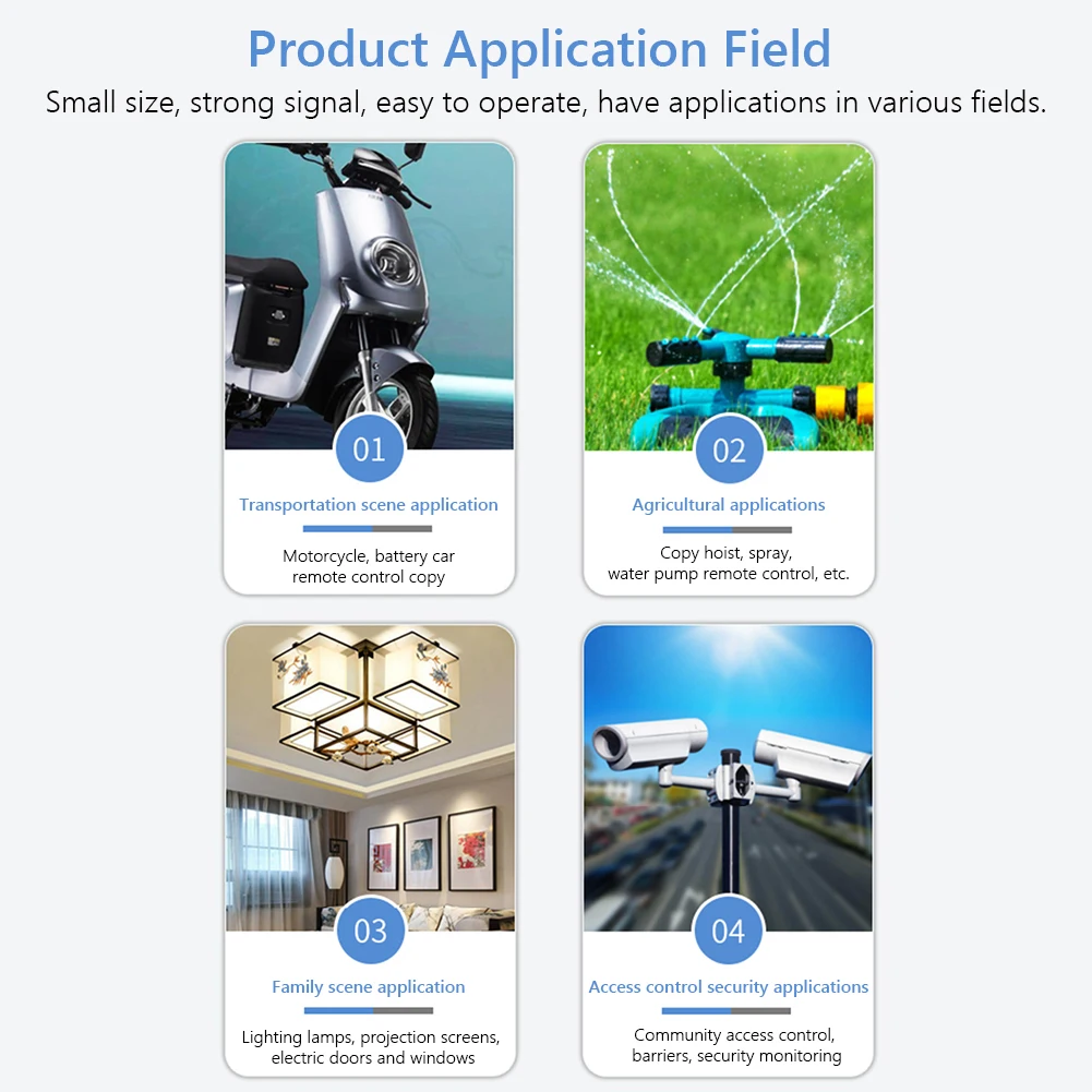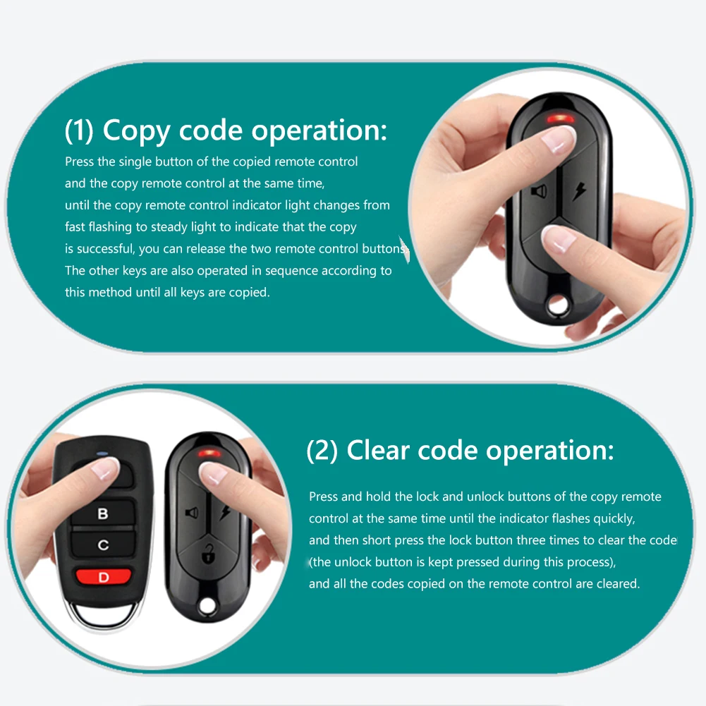 Característica: El mando a distancia de copia ovalada de AK-K200615 adopta el chip de control principal SA901B, admite programación en línea y se puede programar repetidamente. EEPROM incorporado, puede copiar otros controles remotos ordinarios con la misma frecuencia, puede borrar códigos y aprender códigos en cualquier momento, lo cual es conveniente y rápido de usar. Se puede utilizar en el control remoto del automóvil, control de iluminación, control remoto del hogar inteligente y otros campos. Especificación: (1) Frecuencia de funcionamiento: MHz 315/433,92 MHz (opcional) (2) Método de trabajo: copia (3) Material de la carcasa: ABS (4) Tamaño del producto: 66,7x30,5x15,7mm/2,63x1,2X0, 62 pulgadas (incluida la carcasa) (5) Peso neto del producto: 20,21G Parámetros eléctricos: (1) Voltaje de funcionamiento: (2) Corriente de reposo: 0.1uA (3) Corriente de emisión: 7mA (4) Potencia de transmisión: 3-6dBm (5) Temperatura de trabajo: -20-70 ℃ Descripción de la función: (1) Operación de copia de código: Presione el botón del control remoto copiado y el control remoto copiado al mismo tiempo, hasta que la luz indicadora del mando a distancia cambie de luz intermitente rápida a luz estable para indicar que la copia se ha realizado correctamente, puede soltar los dos botones del mando a distancia. Las otras teclas también se operan en secuencia de acuerdo con este método hasta que se copian todas las teclas. (2) Operación de código claro: Mantenga presionados los botones de bloqueo y desbloqueo del control remoto de copia al mismo tiempo hasta que el indicador parpadee rápidamente, y luego presione brevemente el botón de bloqueo tres veces para borrar el código (el botón de desbloqueo se mantiene presionado durante este proceso). (3) Operación DE CÓDIGO DE RECUPERACIÓN Mantenga presionados los botones de silencio y timbre del control remoto de copia al mismo tiempo hasta que la luz indicadora parpadee rápidamente, puede restaurar el código del control remoto que se borró antes. Chip de copia: 2260, 2262, PT2264, 5326, SC5262, HT600, HT680, HT6207, HT6010, HT6012, HT6041, serie SMC918 527, 1527, 2240, HCS101, HCS200/HCS201 (código parcial), HCS300/SCH3001 (código parcial), parte microordenador de chip único. Precauciones: (1) El voltaje de trabajo no puede exceder el voltaje de trabajo. (2) En un entorno con interferencias inalámbricas relativamente grandes, la distancia de transmisión puede reducirse. (3) Manténgalo fuera del alcance de los niños. (4) Está prohibido usarlo en un ambiente húmedo, de lo contrario puede dañar el control remoto. Nota: Debido a los diferentes monitores y efectos de luz, el color real del artículo puede ser ligeramente diferente del color que se muestra en las imágenes. ¡Gracias! Permita una desviación de medición de 1-2cm debido a la medición manual. ![]() ![]() ![]() ![]() ![]() ![]() ![]() ![]() ![]() ![]() ![]() ![]() ![]() ![]() |