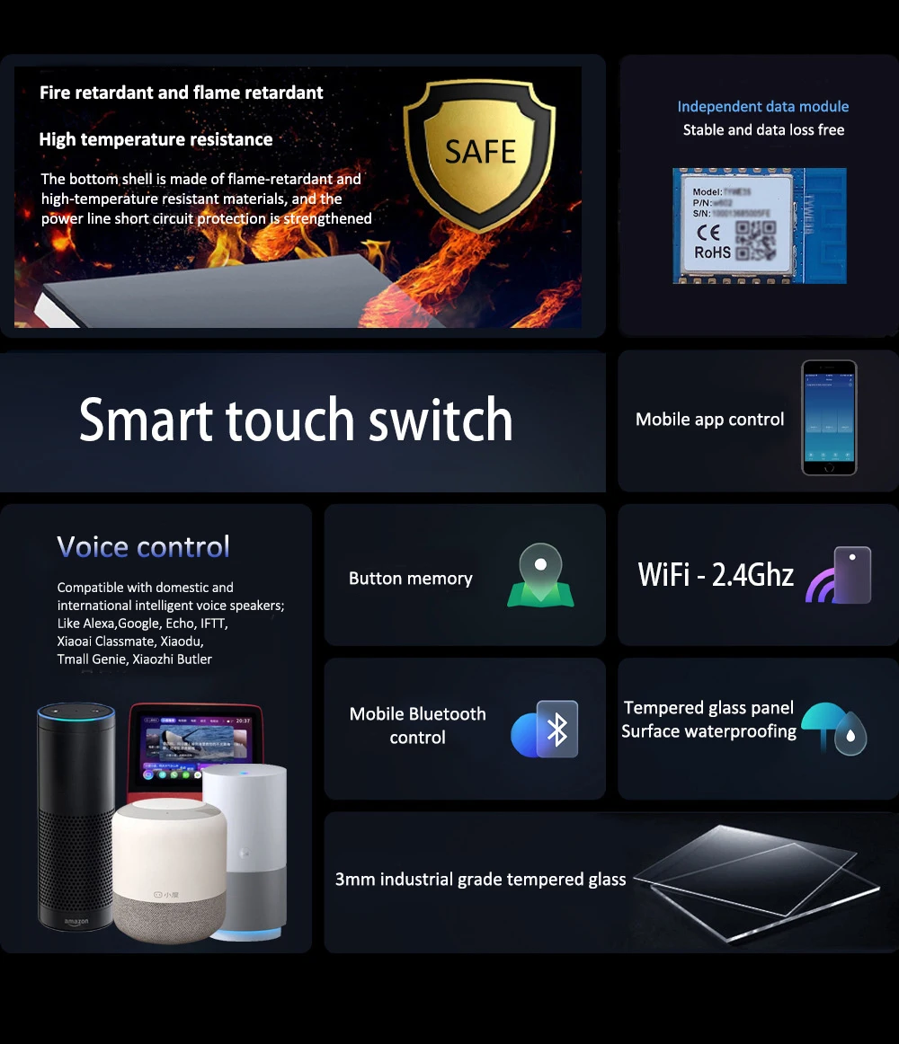 Control de voz Alexa Control remoto habilitado para Wifi Función de temporizador de ahorro de energía Fácil instalación Panel táctil inteligente Interruptor Wifi