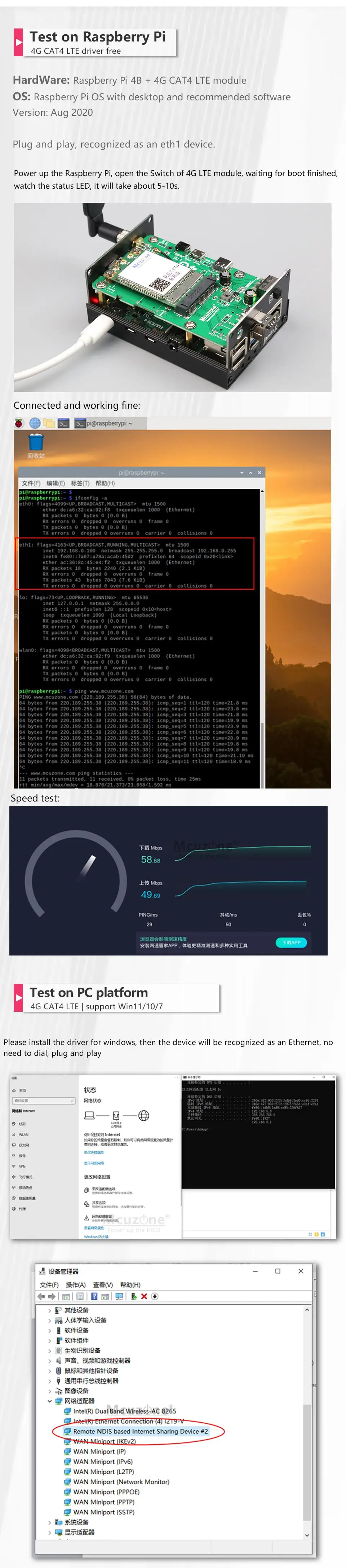Compró el paquete 3 Y lo probó con un RPI 4b, funciona perfecto sin ninguna instalación. El RPI reconoce el módulo como Ethernet. Algo que me perdí al comprar fue el hecho de que tiene 2 ranuras nano SIM.