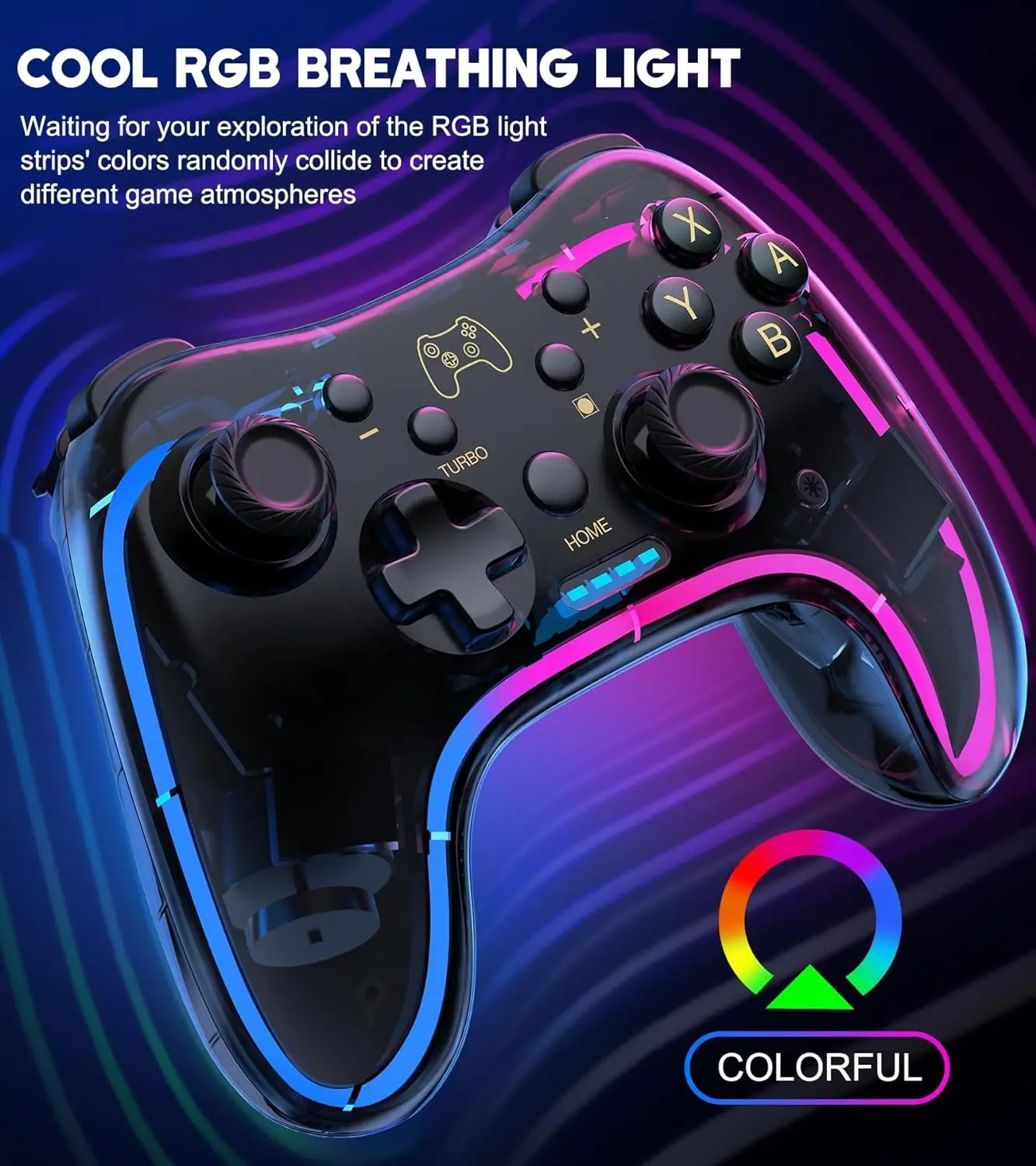 【LUZ LED DE 10 COLORES Y 3 MODOS】 Los controladores Switch están hechos de un resistente material transparente de PC, con una tira RGB integrada que combina 10 colores para crear una atmósfera de iluminación de juego cautivadora.Ofrece 3 modos de luz diferentes, que se pueden controlar fácilmente mediante un botón adicional.Personaliza los efectos de iluminación según los diferentes juegos y sumérgete profundamente en el mundo del juego.