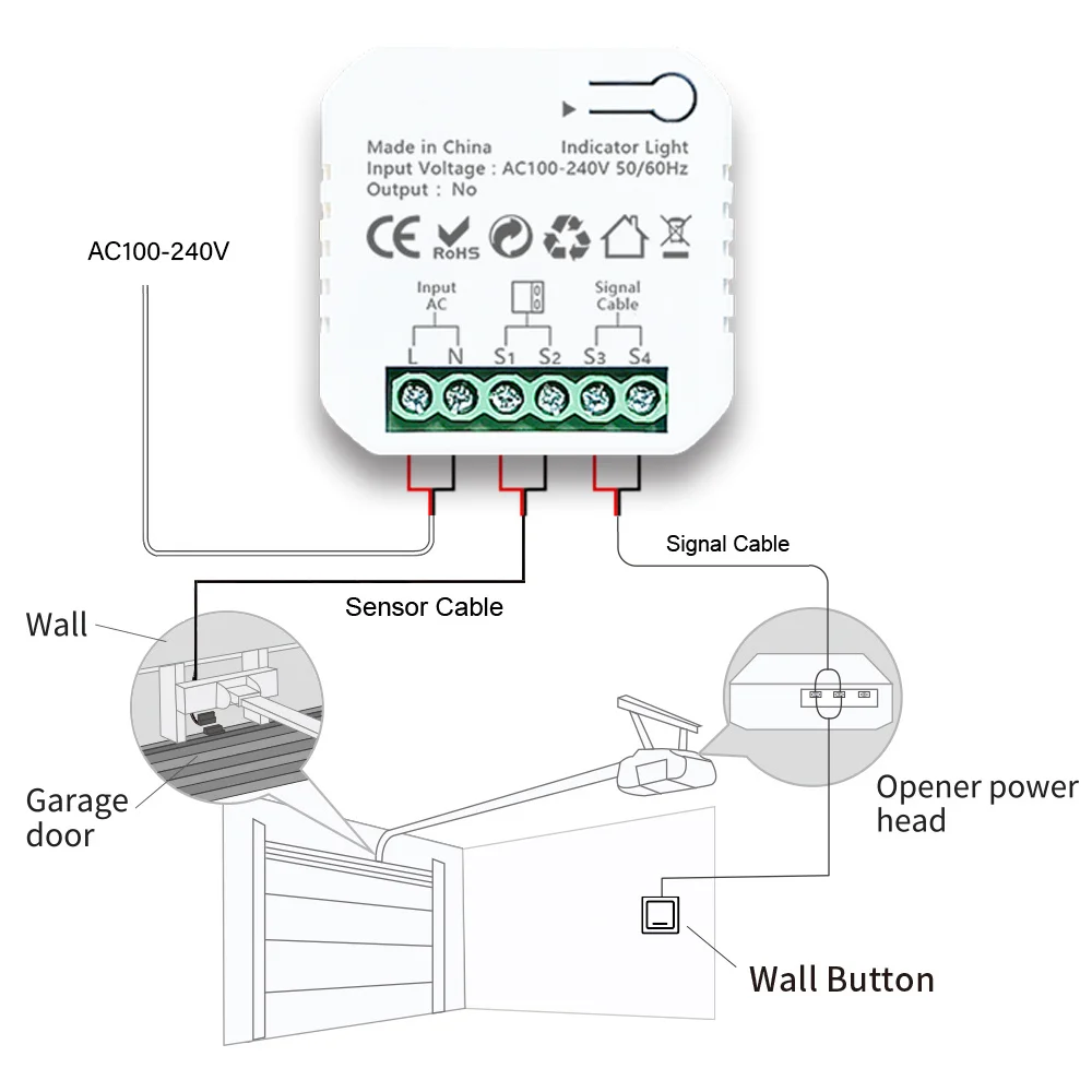 Comprar Controlador de abridor de puerta de garaje con Sensor, Control remoto por aplicación, compatible con Alexa Home, Tuya Smart Life, WiFi, 2 piezas