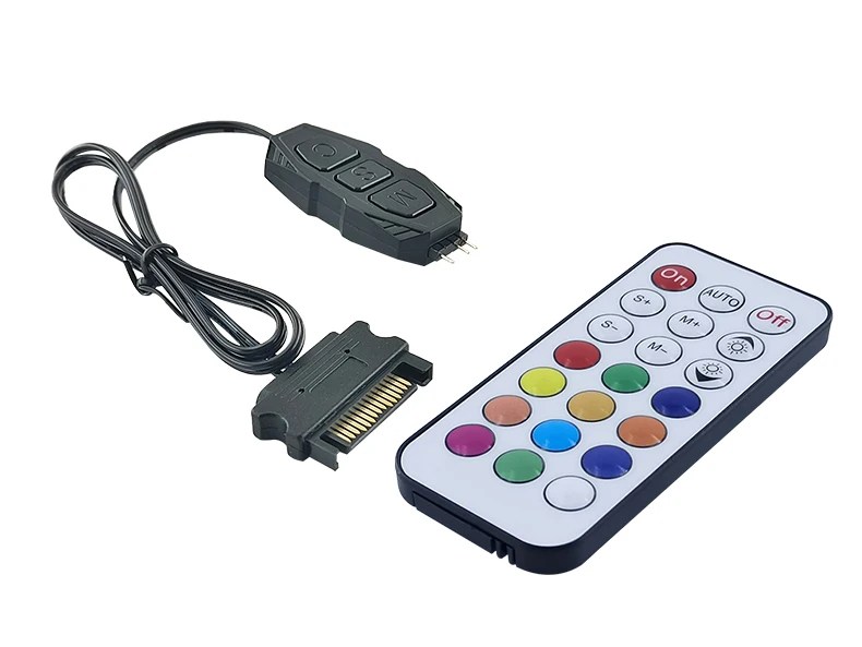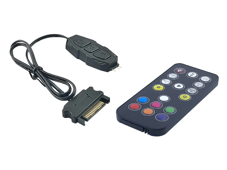 Comprar Controlador ARGB de 5V y 3 pines a Mini controlador remoto SATA RGB, adaptador HUB, mando a distancia RGB para ventilador de PC, tira de luz de ventilador de refrigeración
