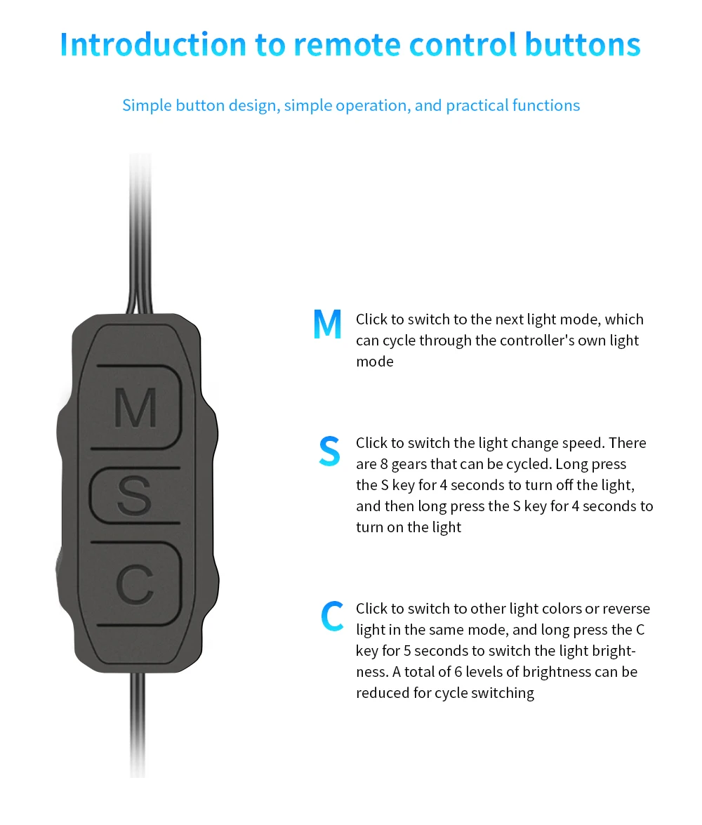 1.El diseño del cable de interfaz alargado de 5 V y 3 pines le permite conectar el controlador a otros equipos cómodamente.