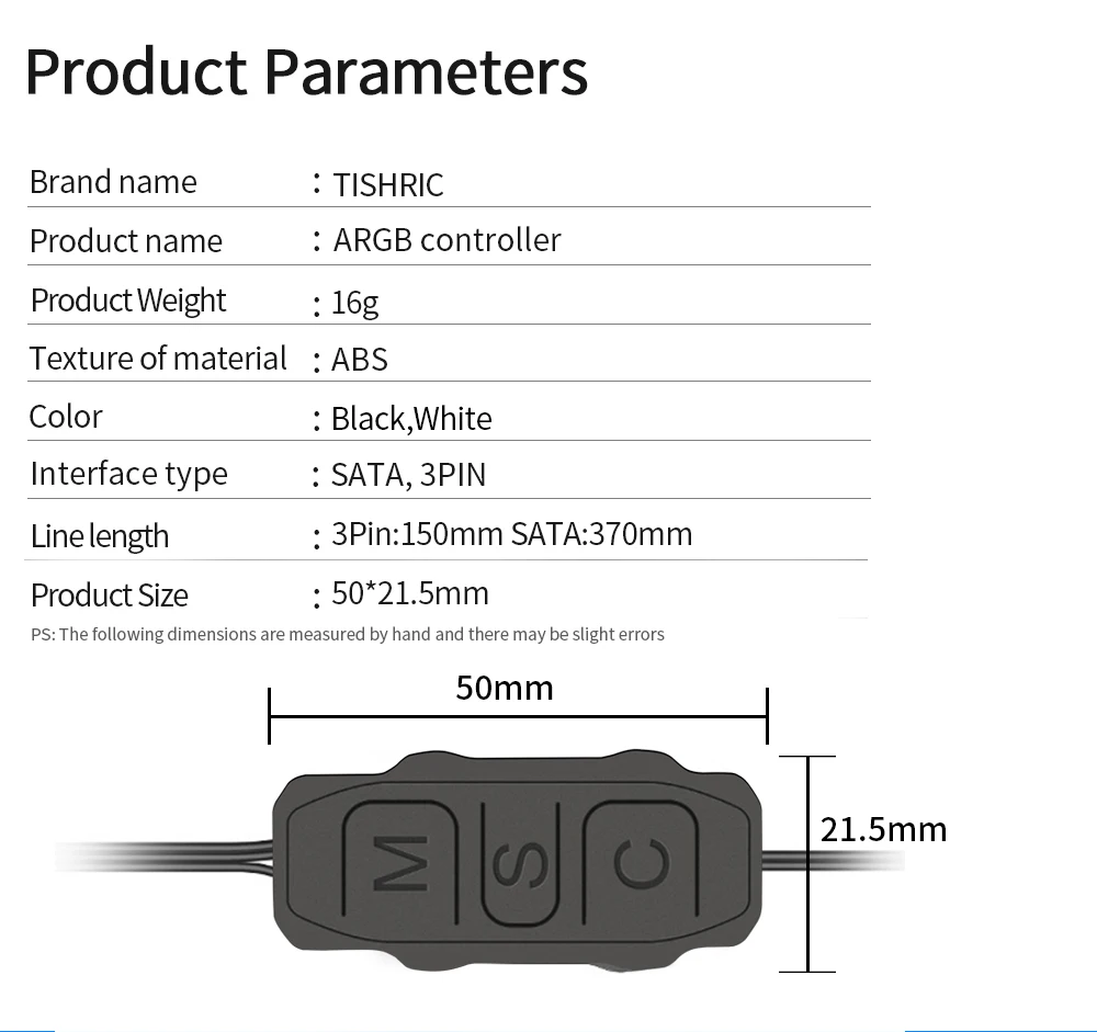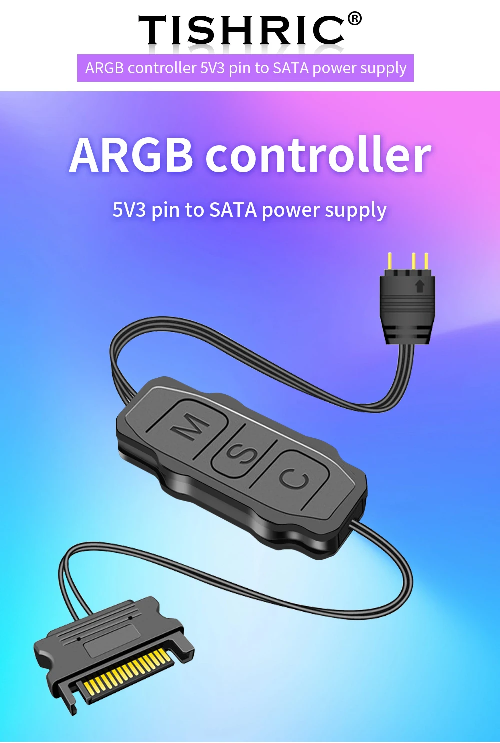 TISHRIC ordenador PC caja ventilador de refrigeración controlador ARGB 5V 3pin a adaptador de fuente de alimentación SATA Mini controlador adaptador de sincronización ARGB