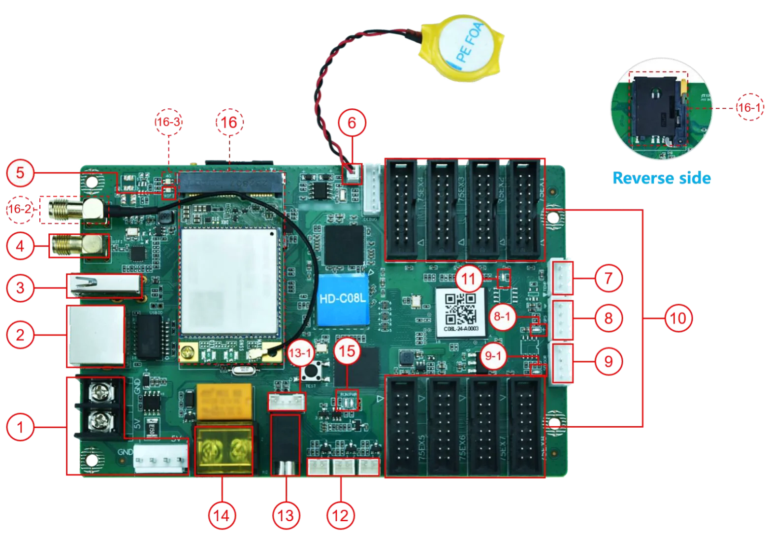 Huidu C08L reemplaza el controlador asíncrono HD-D16 HD C08L pantalla LED sistema de control asíncrono para pantalla LED pequeña y media