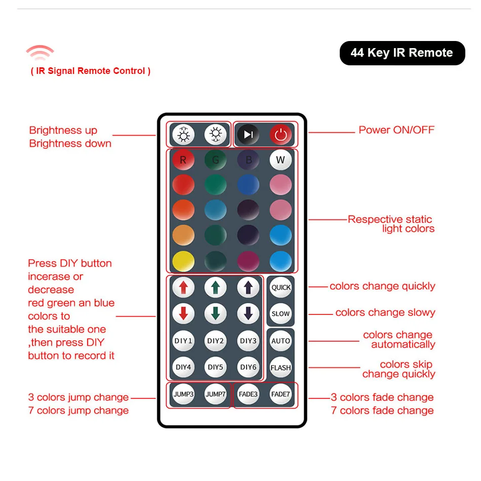 Controlador IR de 44 teclas:(No incluye batería )
