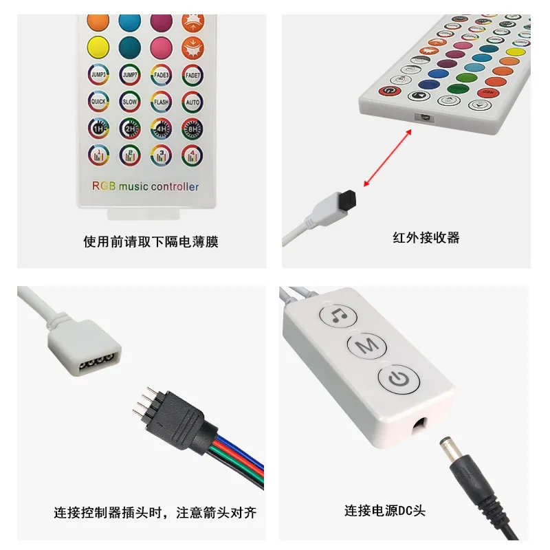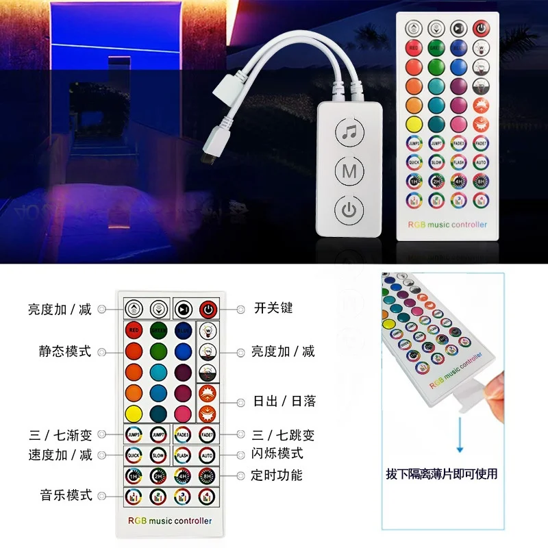 Controlador Bluetooth con control remoto IR de 40 teclas para tira de LED de 5-24V, micrófono de música con luz LED 5050, dispositivo inteligente para retroiluminación de fiesta